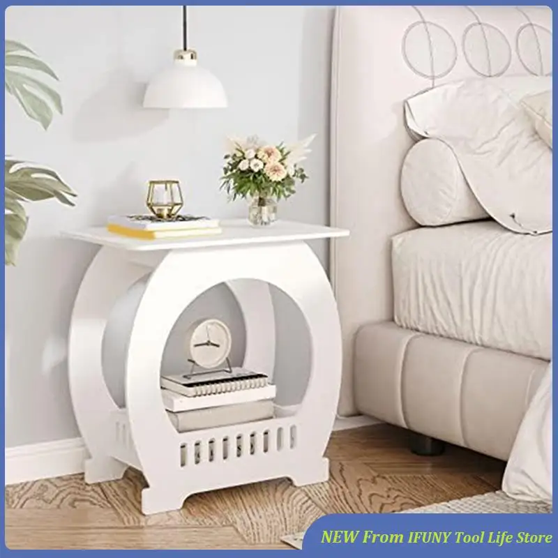 1 Piece Narrow Bedside Table White Nightstand With Storage Shelf Basket Slim Coffee Tables Small Spaces,Sofa Table New