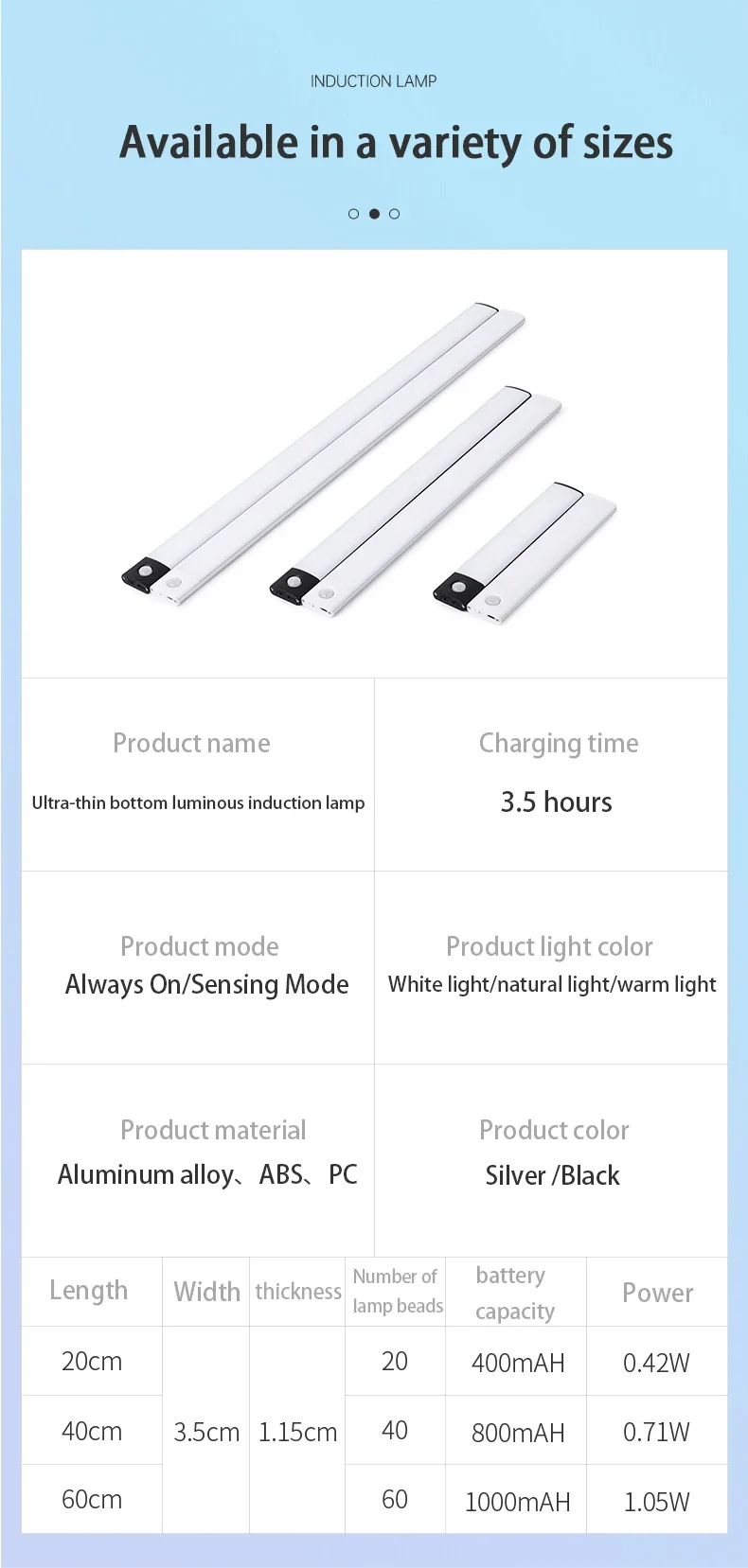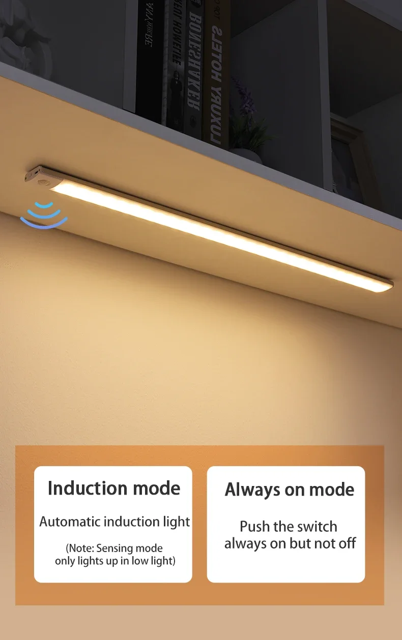 【Quick Charging and Long Battery Life】LED Closet Light with a built-in rechargeable lithium-ion battery, it only needs 3 hours to charge quickly, It can last for over 5 Hours under Always On Mode, if lighted eight times a day, it can last for about three months.