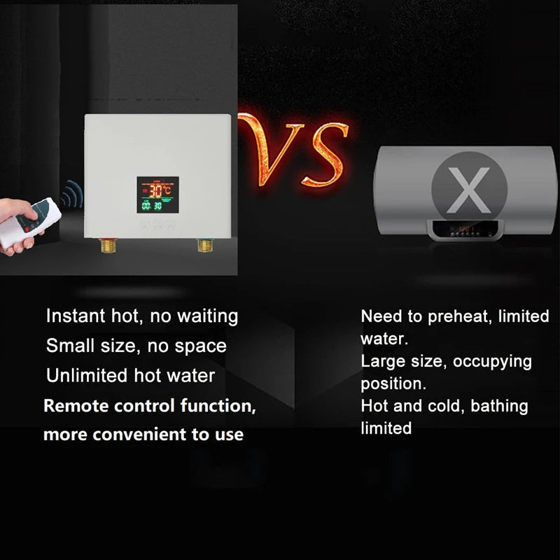 3.This mini water heater is easy to operate with an indicator light and LED temperature number.