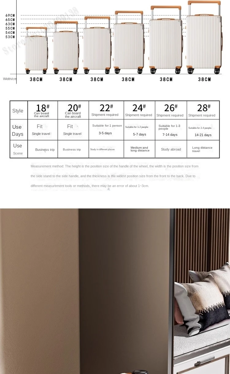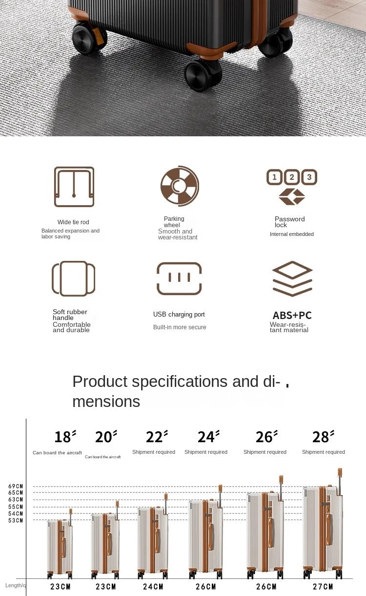 Travel smart with the 18–28 Inch Wide Trolley Suitcase—a multifunctional travel companion built for convenience, security, and durability. This wide trolley suitcase features mute brake wheels, a USB charging port, a password lock, and generous large capacity storage, making it ideal for business trips, vacations, or everyday boarding.