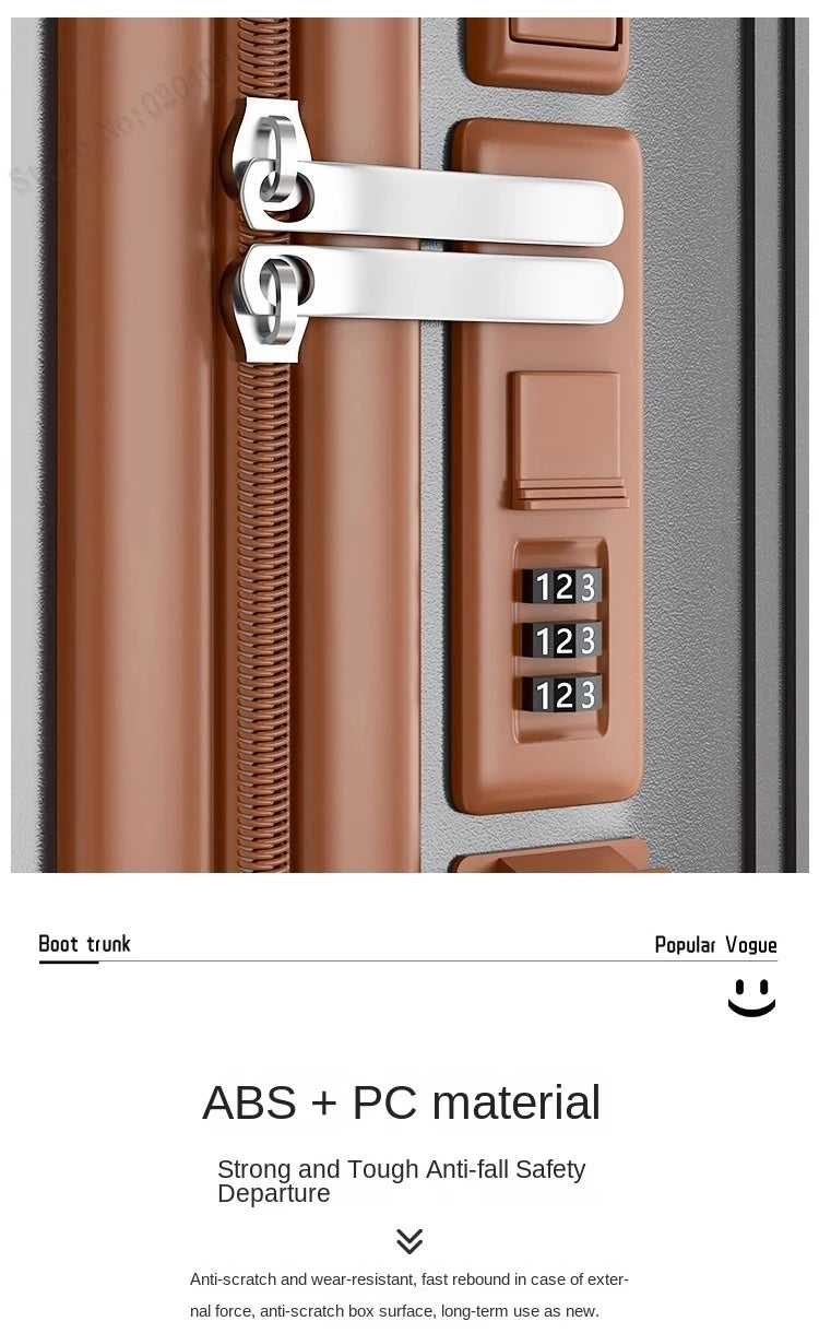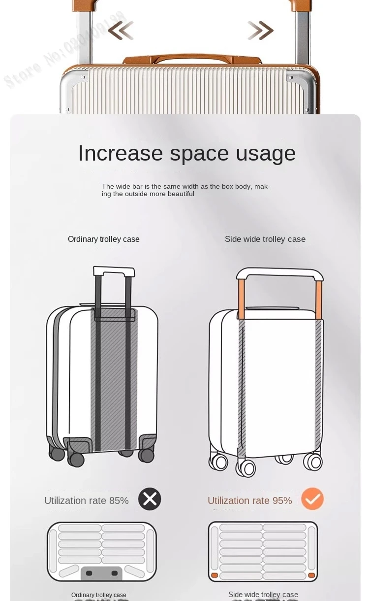 The 18–28 Inch Wide Trolley Suitcase is designed with a strong hard shell exterior to protect your belongings, while the interior compartments keep everything organized. The brake wheels allow for stable parking, and the mute rolling system ensures quiet, effortless mobility. The integrated USB port makes on-the-go charging seamless, and the secure password lock keeps your items safe at all times.