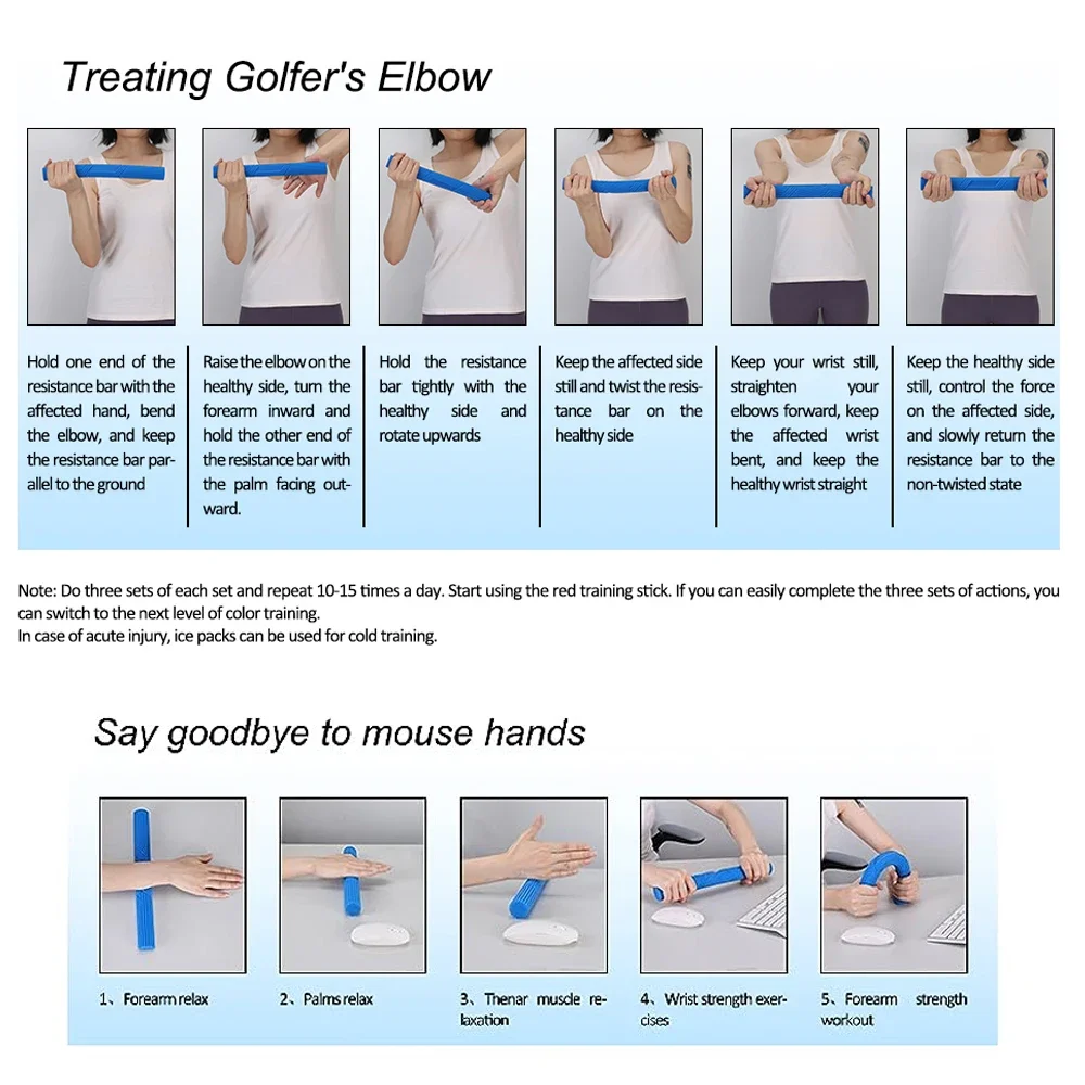 4. Portable and Convenient: Tennis elbow and golfers elbow relief bar compact and lightweight design makes it highly portable and easy to use anywhere. Whether you're at home, in the gym, or traveling, you can conveniently incorporate physical therapy flex bars exercises into your routine for a quick and effective workout session.
