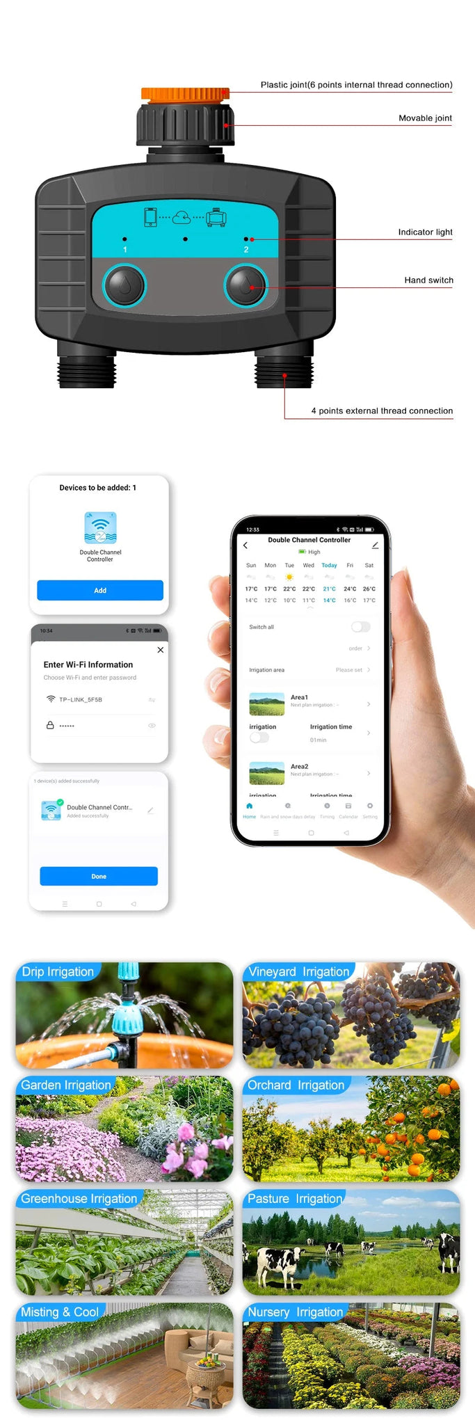 This product is suitable for automatic control products such as courtyards, balconies, home green walls, three-dimensional greening micro-sprinklers, droppers, and infiltration irrigation.