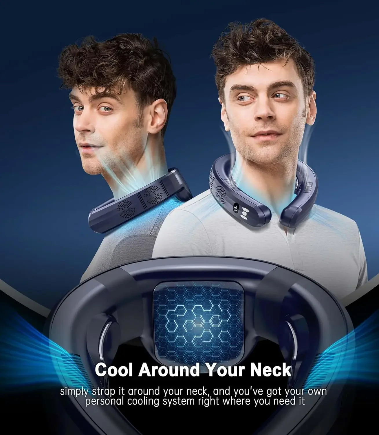 - Safe and User - friendly Fan Design: Our neck cooler features a bladeless design with dual turbine moter on per side and honeycomb - shaped vents on the side. This innovative design effectively prevents hair entanglement, ensuring your safety and convenience. Please make sure to keep the vents are not blocked to guarantee normal air output and heat dissipation, so you can enjoy a trouble - free cooling experience