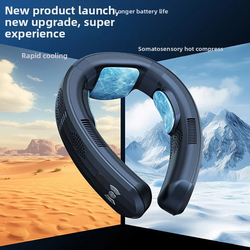 2025 Upgrade new semiconductor refrigeration neck fan, intelligent digital display, cold and hot dual-purpose bladeless fan