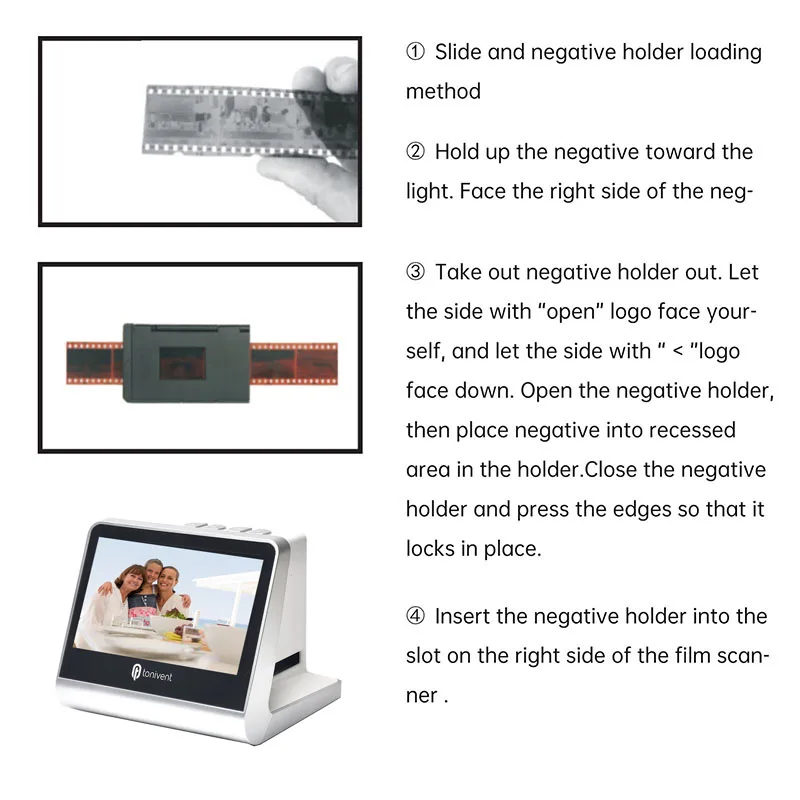 Easy to Use: No driver or software is needed. Color 5" LCD HD screen design which support 24W/48W Pixels display, and it's with 8 system languages -Chinese / T-Chinese / English / French /German / Italian / Spanish / Japanese, free to operate and enjoy the pictures just in the film scanner.