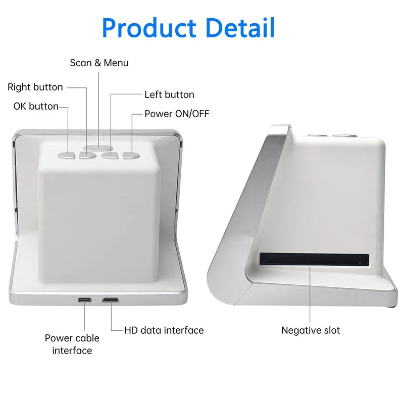 High Definition Scanning Sensor: Adapt 1/2.33” CMOS sensor with 22.0 Mega pixels (4416*3312), makes the film transfer in clear image. Built-in 16GB memory, the scanned pictures can be stored in this machine.