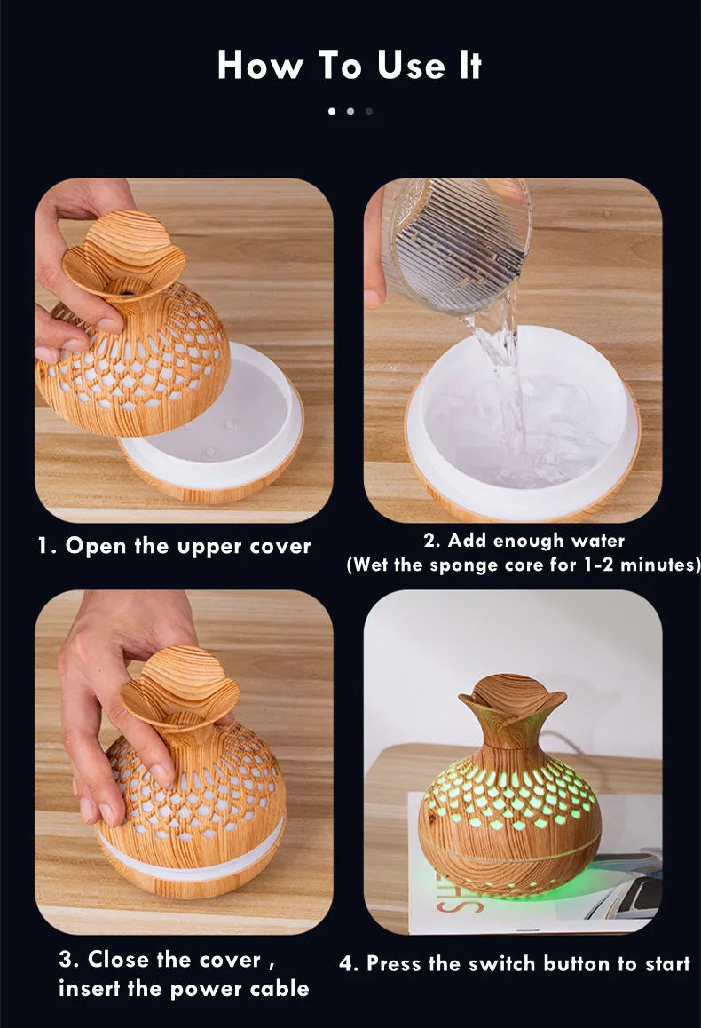 Equipped with colorful night lights, this humidifier creates a soothing ambiance, ideal for relaxation or creating a serene study space.