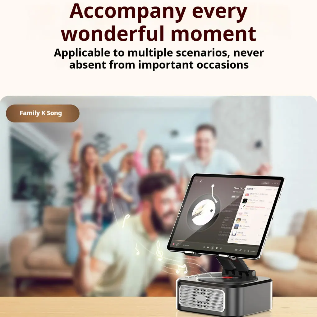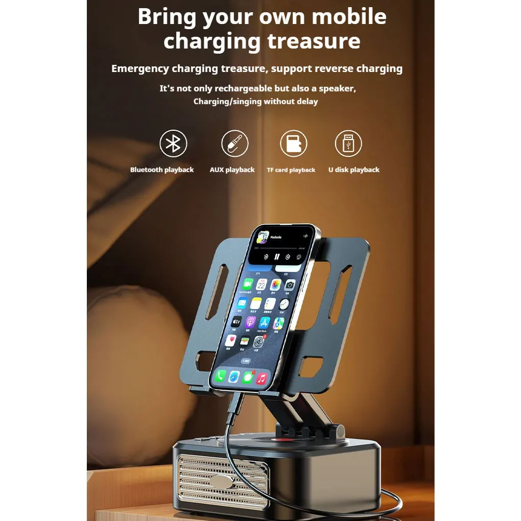 Innovative Three in One Design: The rotating tablet stand speaker integrates a phone stand, Bluetooth speaker, and portable power bank into one, becoming the ultimate entertainment companion