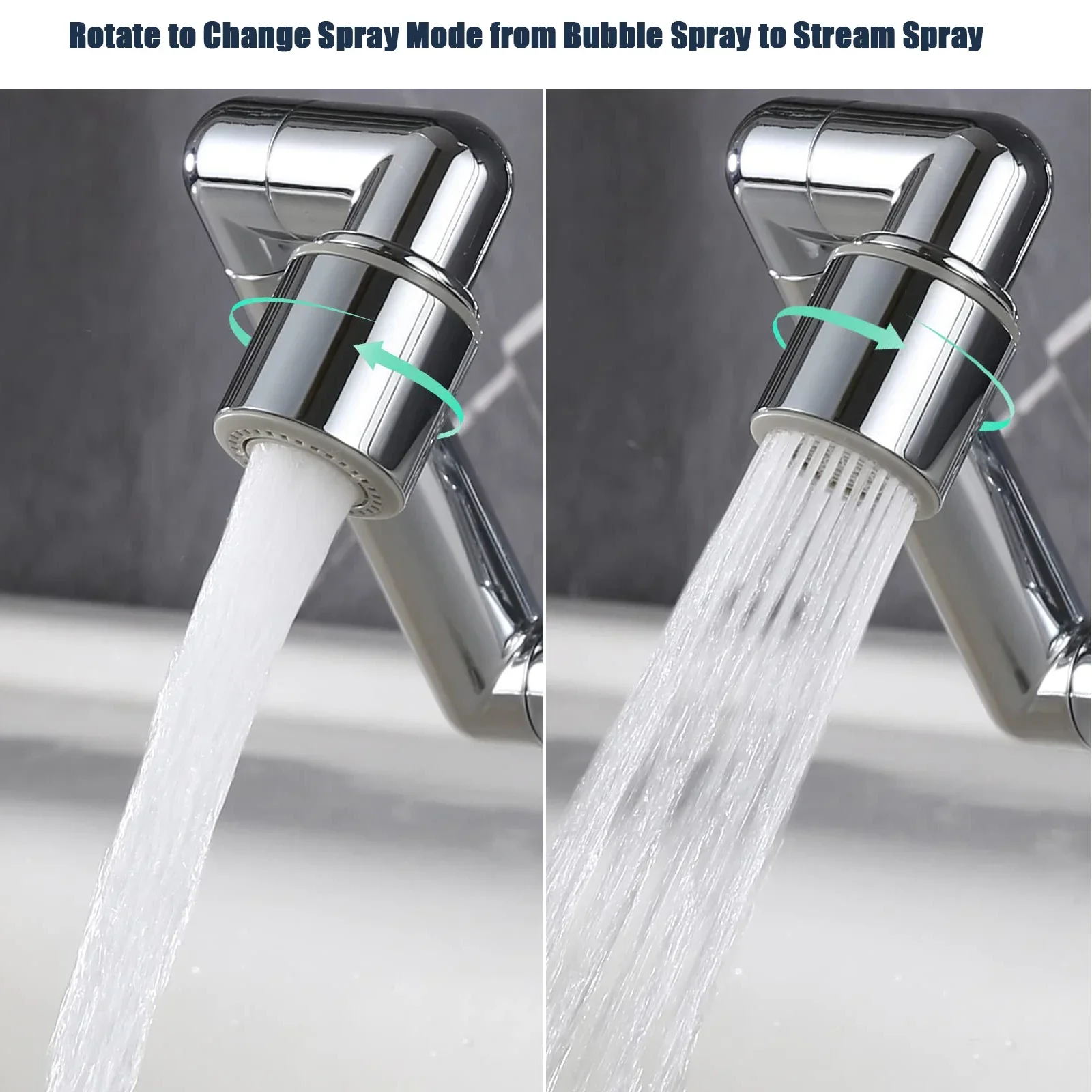 - 【Foldable & 1440° Swivel】Updates Based on 1080 Degree Faucet Aerator. The newly upgraded robotic arm faucet extender can rotate 1440 °, there are 4 positions to adjust the angle and each can be rotated at omnidirectional 360 degrees. It can be folded and stored. You can easily rotate the tap to the direction you want, making it more convenient to wash your face and gargle.