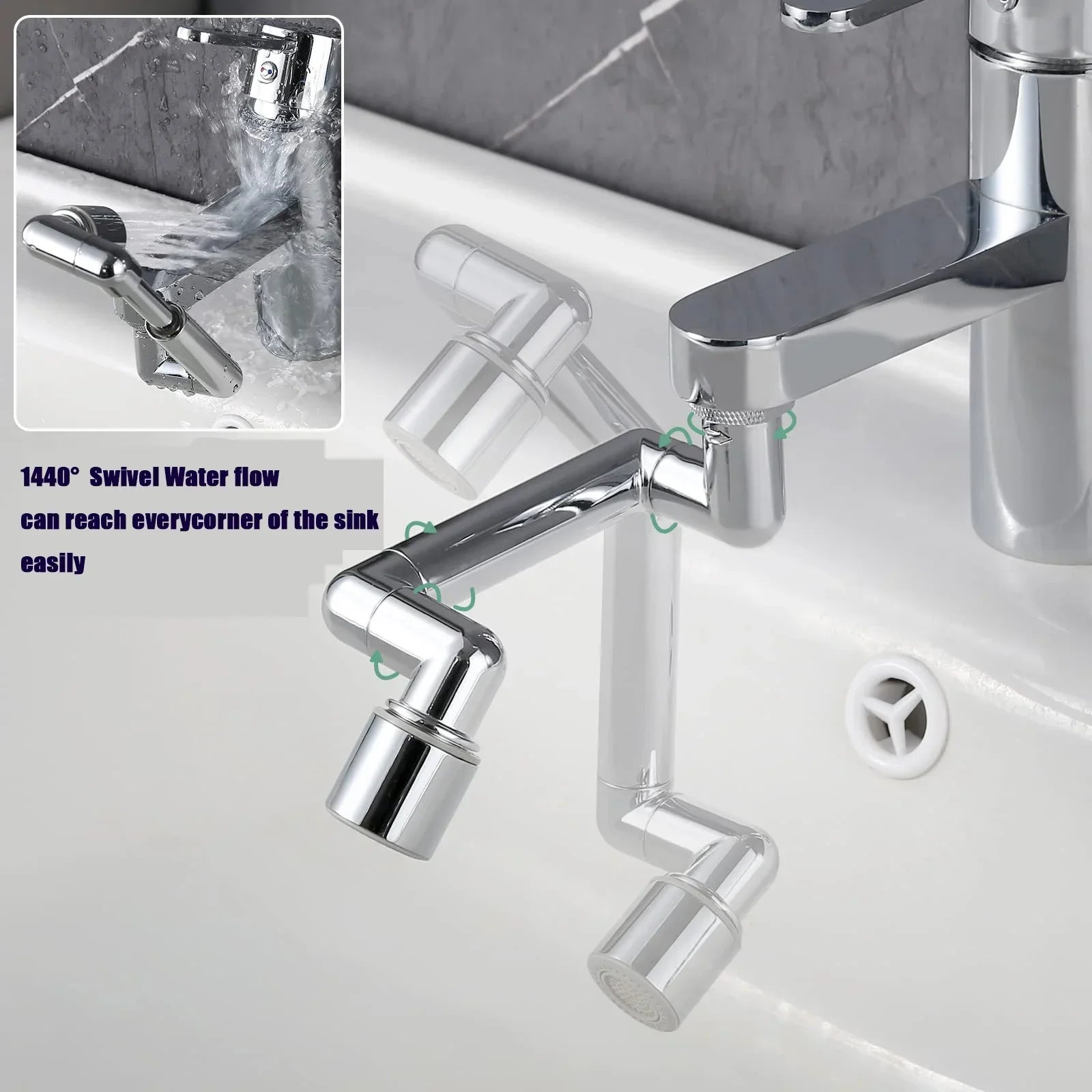 1pcs 1440° Rotary Faucet Extender Aerator Washbasin Robot Arm Bathroom Sink Mixer Tap Adapter Kitchen Tap Sprayer Accessories for RV Camper