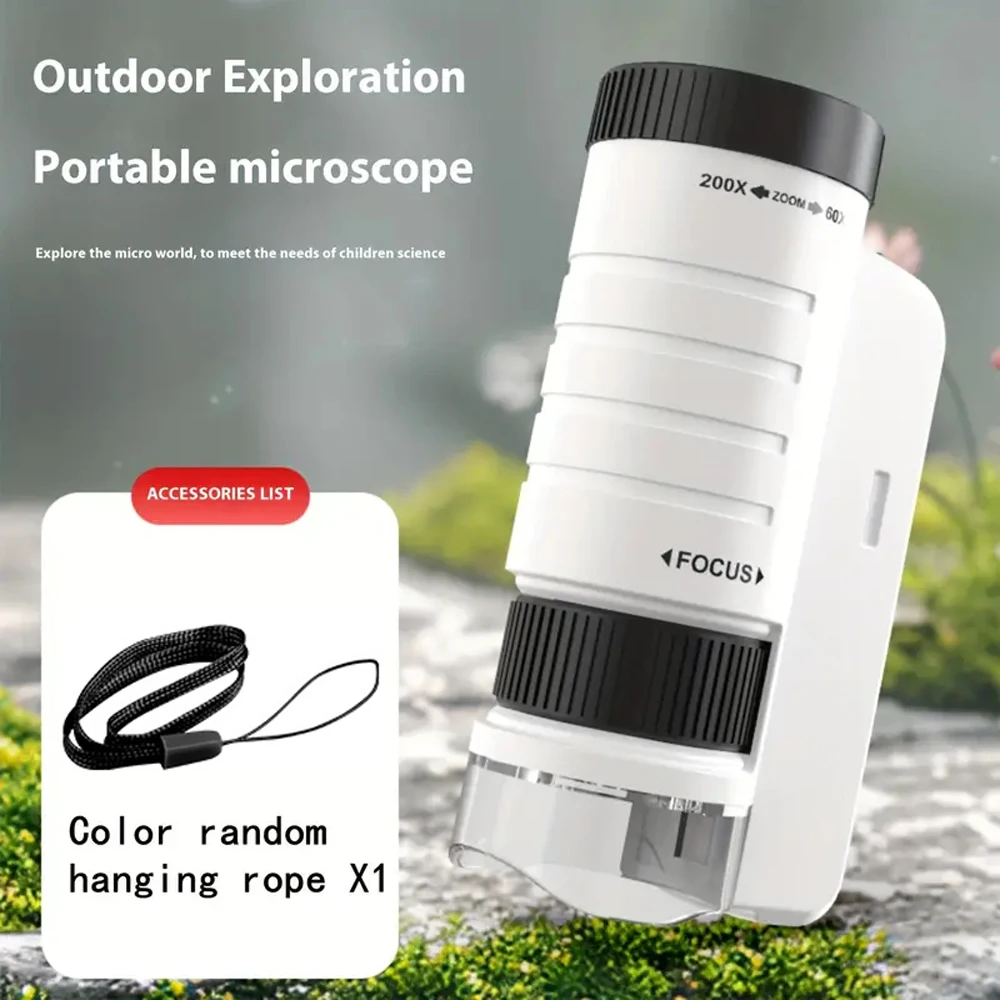 60-200X Children Microscope Pocket Microscope with LED Portable High Definition Science Microscope Outdoor Pocket Kid Microscope