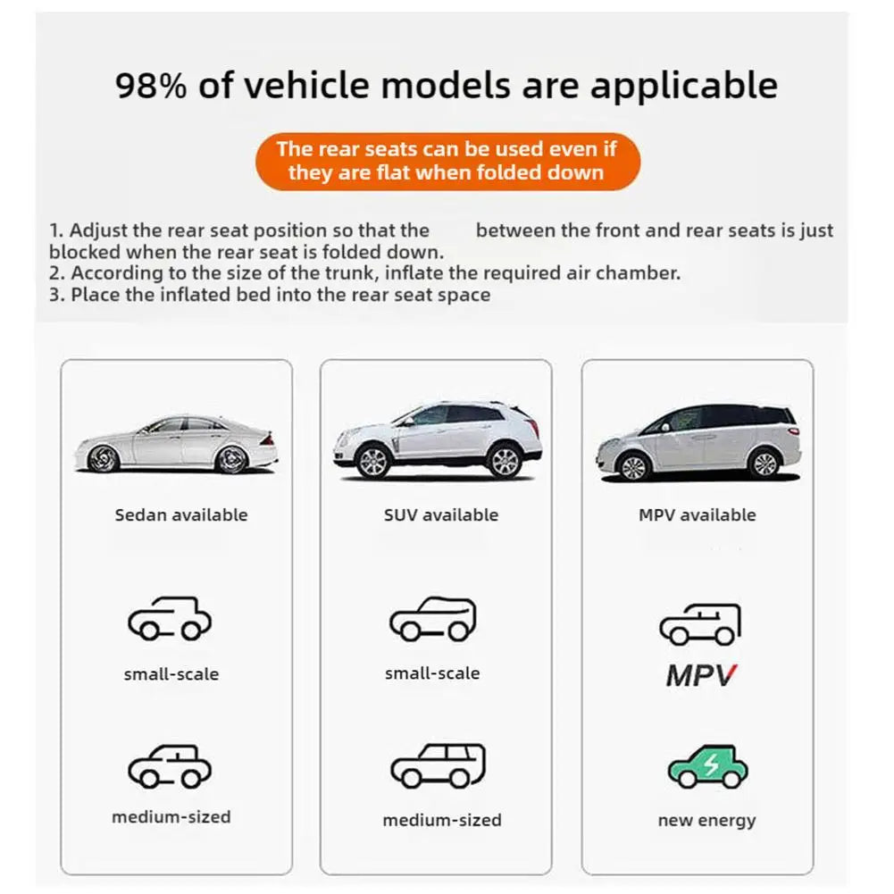 4.Easy To Use: Airbags on both sides of the Inflatable Car Bed can be quickly inflated or deflated to the desired hardness in minutes. The hardness can be adjusted according to your needs.