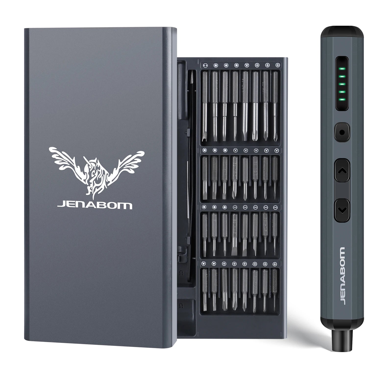 This micro electric screwdriver kit is equipped with 64 different types of S2 steel bits, 1 electric screwdriver, 1 magnetizer/demagnetizer,1 metal spudger, 1 tweezers. 1 type-c charging cable.