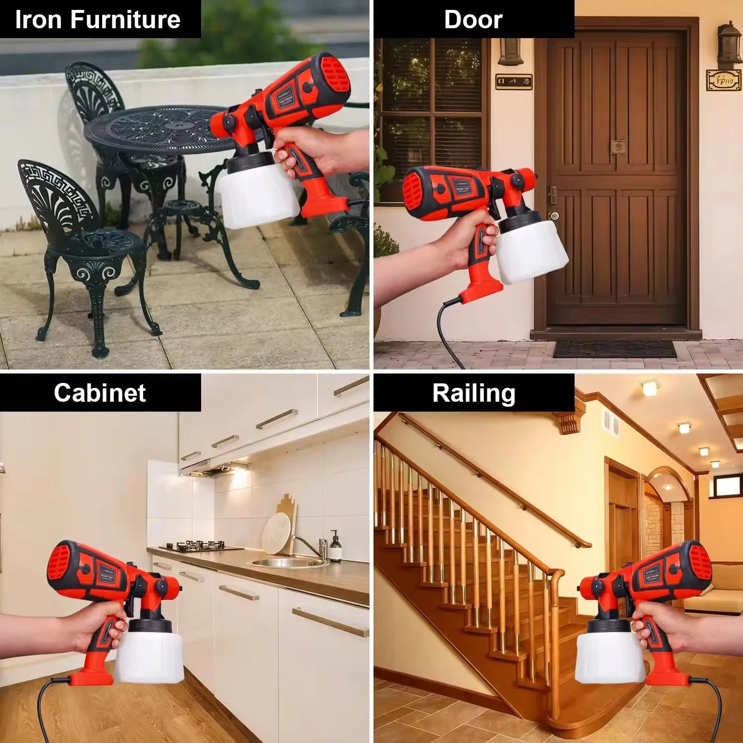 *1. Advanced Technology&Careful Design: Enhance painting efficiency with a spray gun feature a 900ml high capacity container Improved maximum viscosity for a smooth finish. Adjustable flow control knob for precise paint volume output, suitable for a variety of items and hard-to-reach areas.