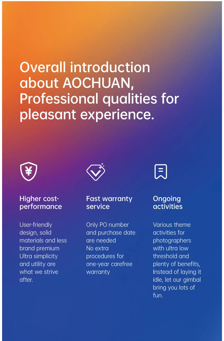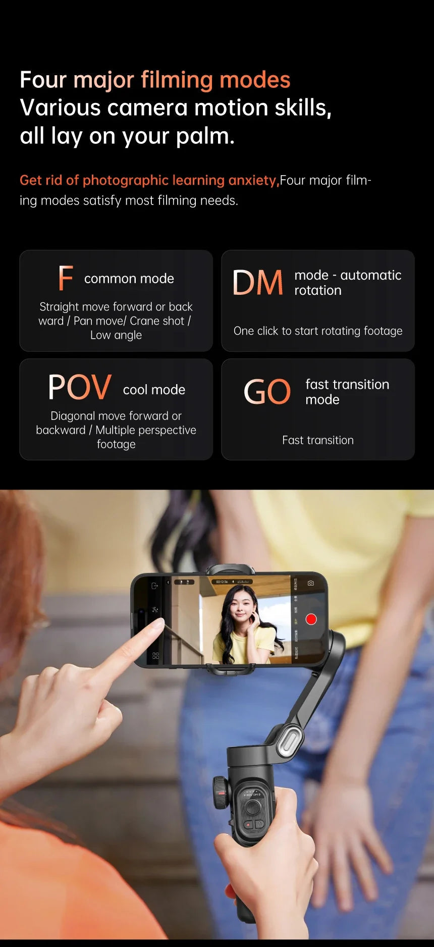Excelente eficiencia y relación calidad - precio. Estabilidad de tres ejes, cuatro modos de seguimiento activo, combinación de ruedas de enfoque y barras de enfoque, equipo fotográfico necesario. Cuatro modos de seguimiento inteligente, control de gestos remotos, su fotógrafo privado está en su lugar. 10 horas de súper resistencia% adiós a la ansiedad de la batería, inmerso en la fotografía.