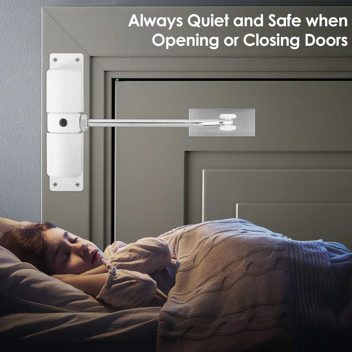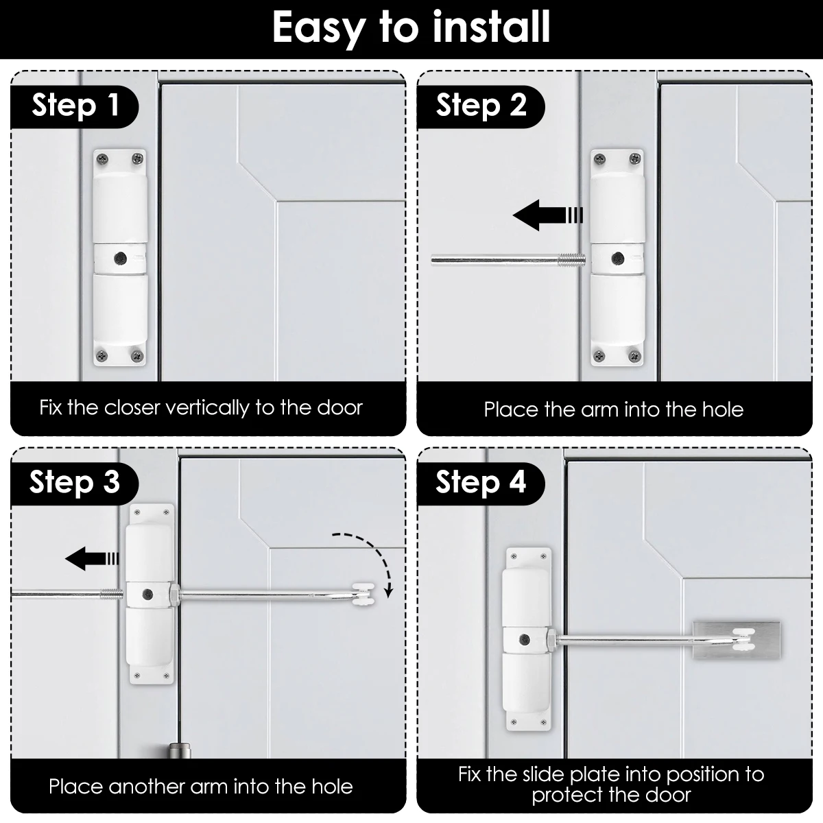 [Durable Metal Material] This automatic door closer is made of premium metal material, which is durable and not easy to fade. It has fine workmanship and rust-proof.