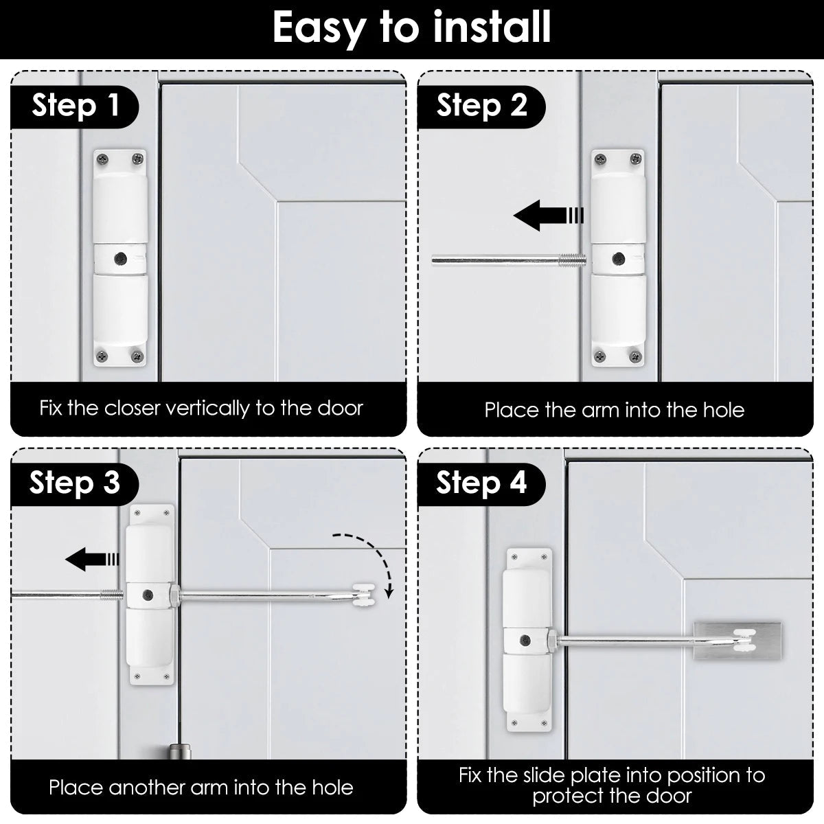 [Easy Installation] This automatic door closer comes with accessories for easy installation. It can be used on doors weighing up to 30 kg and you can adjust the tension.