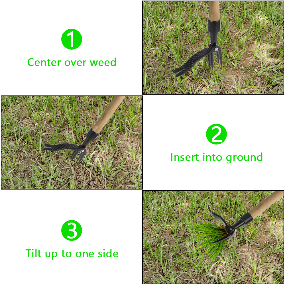 The weed puller is easy to use, from multiple directions by simply inserting into the weed and and the weeds and roots can be easily pulled out.