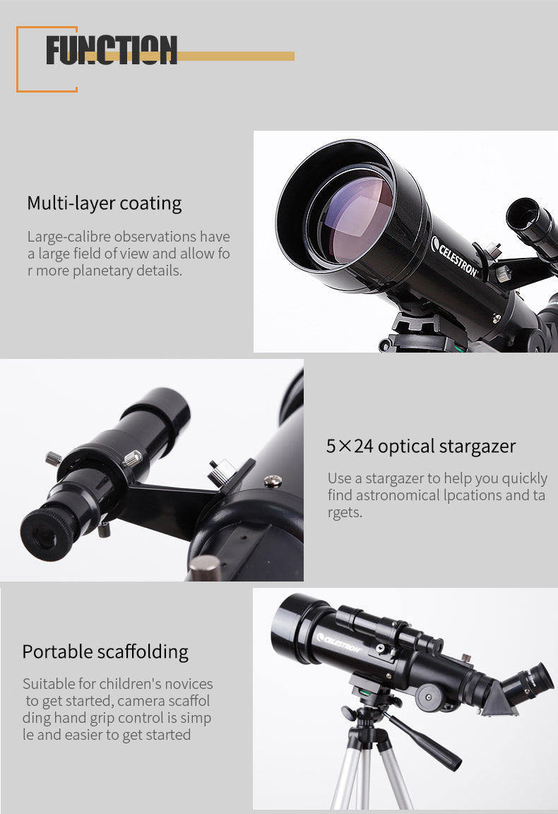 LARGE 70MM OBJECTIVE LENS: This refractor telescope features a large, 70mm aperture objective lens that provides brighter, more detailed views compared to the 50mm model while adding very little additional weight.