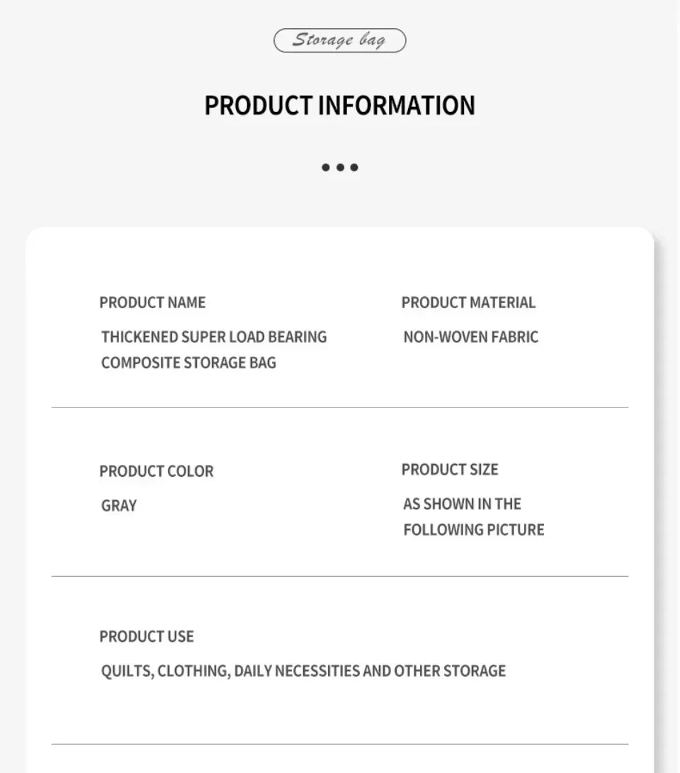 Clothing and Quilt Bag Thickening and Widening Strong Load bearing Capacity Storage Bag Big Opening Non Woven Fabric Packing Bag