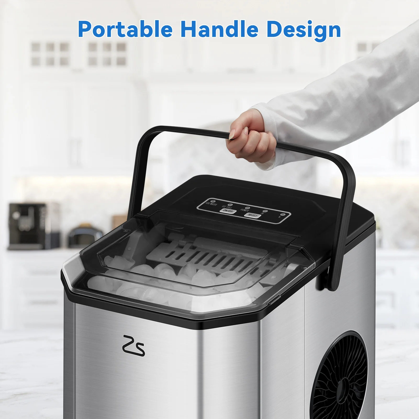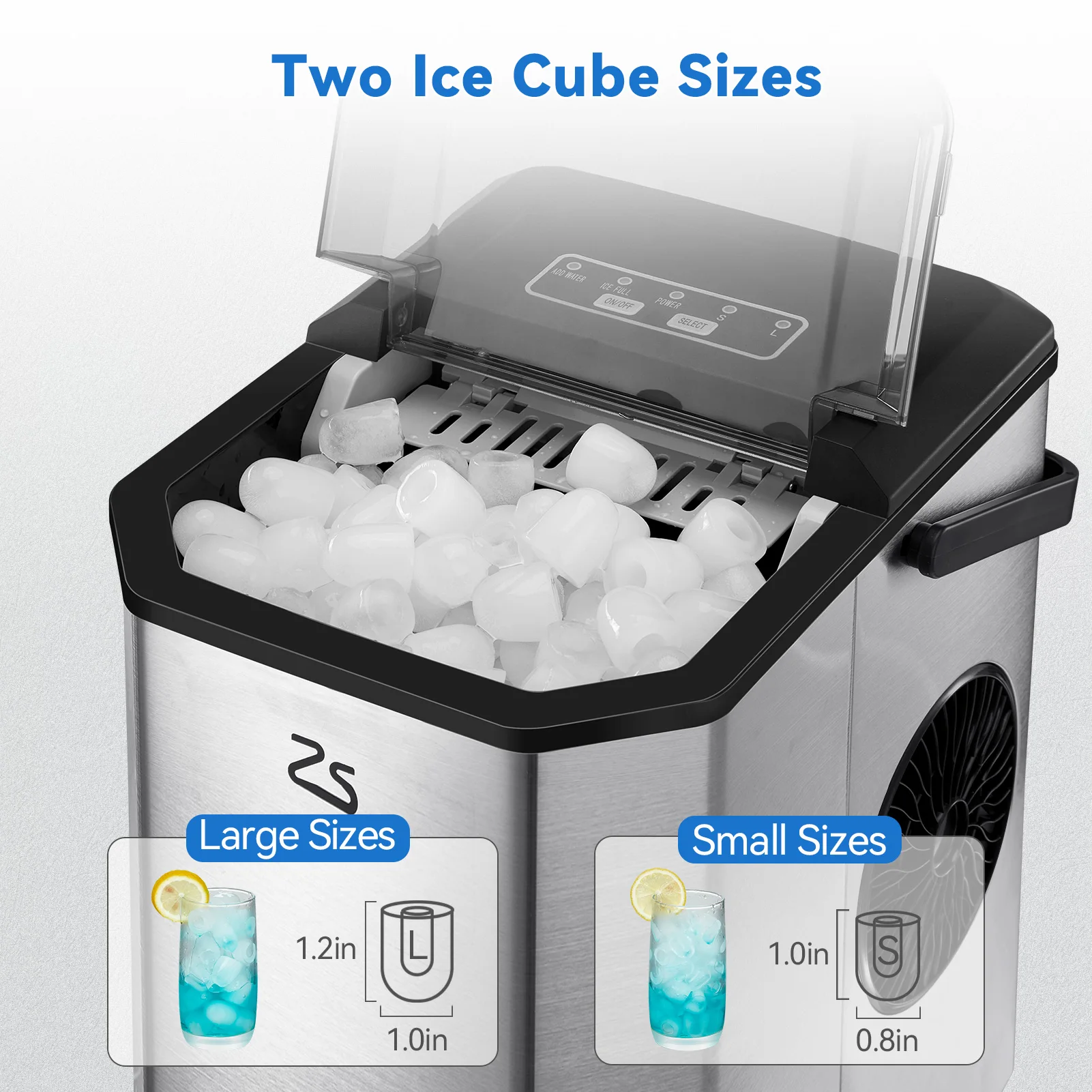 🧊 One-Touch Operation: Easy to use with simple control panel. Just add water, select the ice size(S and L are optional),it is ready to work. When there is not enough water Or when the ice bucket is full, the indicator will light up, reminding you to add more water or to remove the extra ice cubes. The thickened foaming layer ensures a good insulation effect, keeping the ice from melting for 5-8 hours at normal temperature