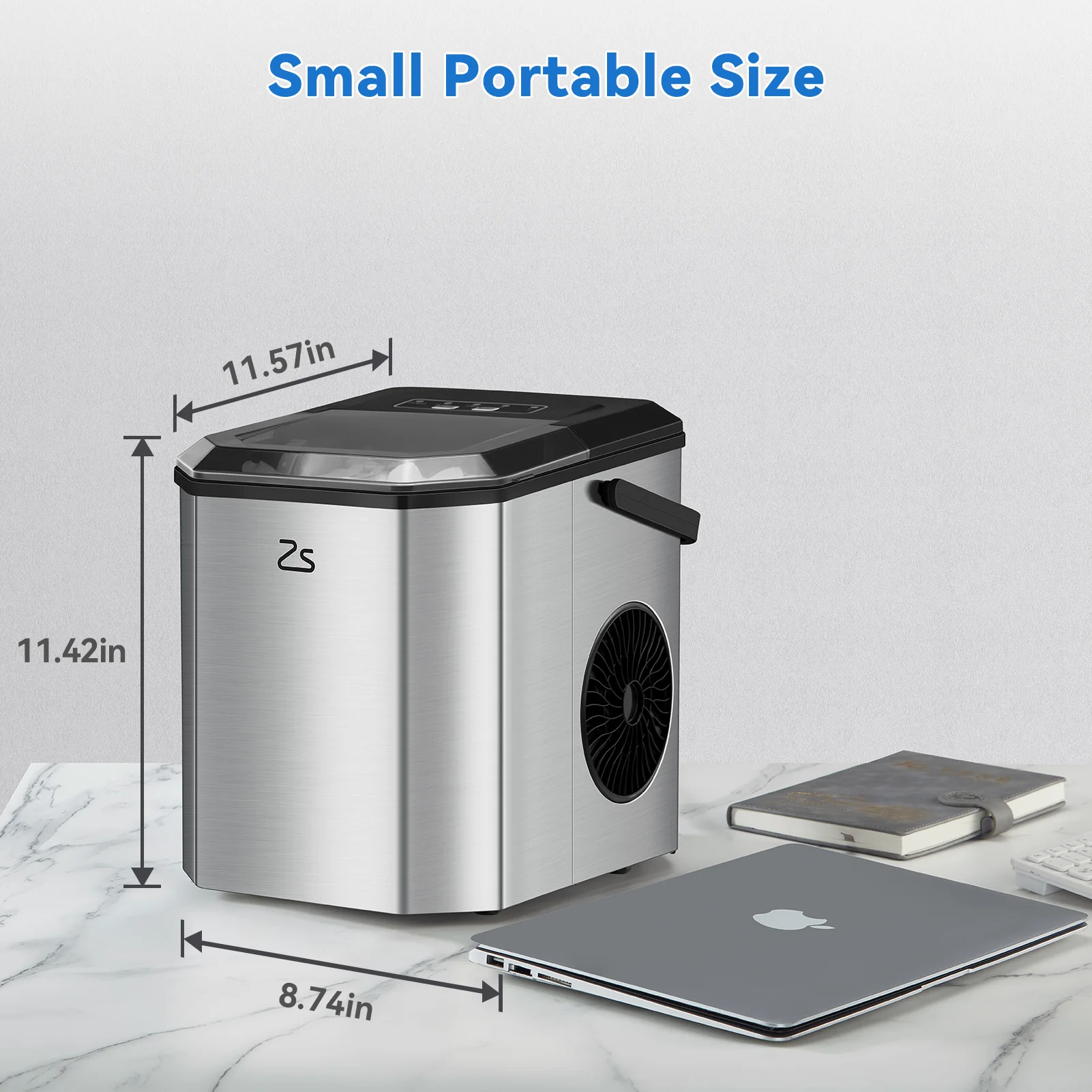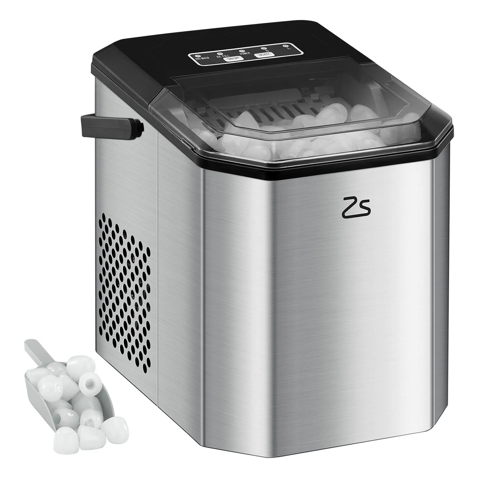 🧊 Compact Design & Stainless Steel Shell: Measuring at 22.2(D)*29.4(W)*29(H) cm, and comes with a top handle for easy portability. This makes the ice machine an excellent choice for home, kitchen, office, coffee shop, parties, bar, or even RV travelers where space is limited, but ice is still needed on demand. Made of stainless steel, this ice maker is durable and provides a longer service life