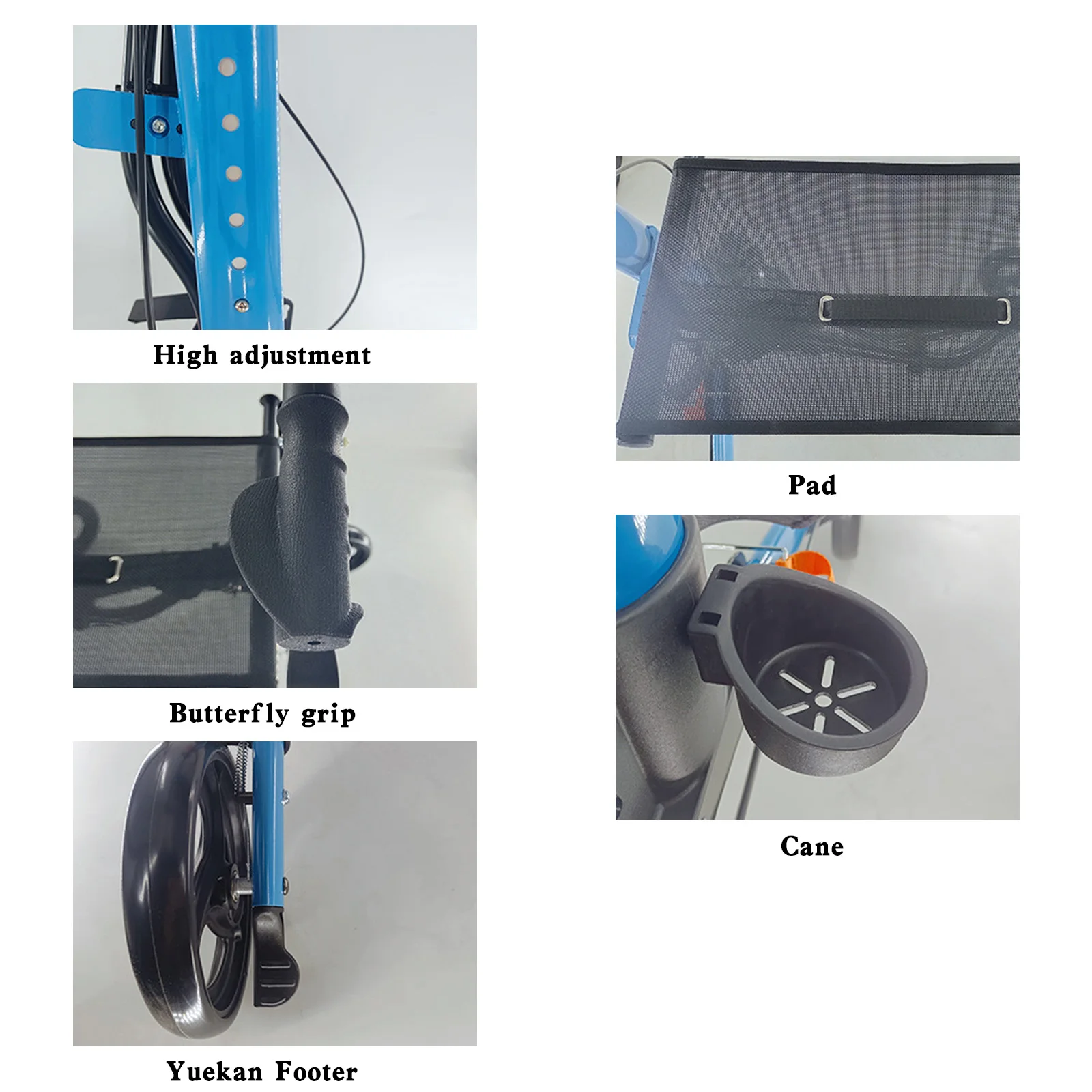 Adjustable Height: walker for seniors is extremely flexible, the handles can be adjusted to the ideal height from 31.5” to 335.4” . It is easily adjust the height of the walker to different heights to meet your needs.