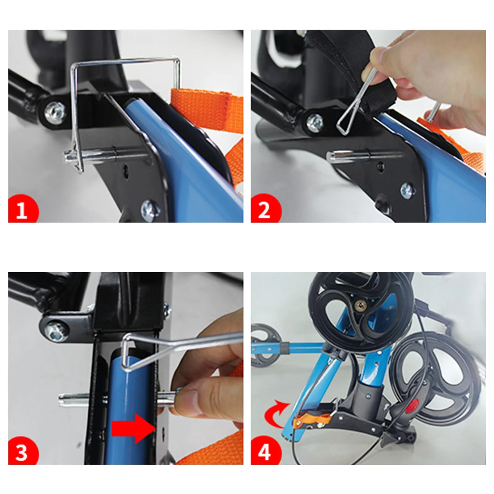 Compact Folding Design: This rollator walker for seniors is designed to transport and storage much more easier, fitting in the trunk of a car or even in the backseat. Just pull up the strap at the middle of the seat so that wider rollator walker can closes toward the center and help you walk through some narrow door.