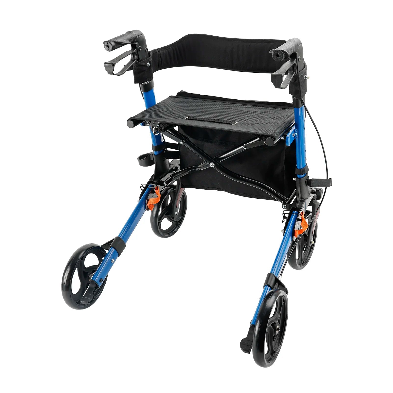 DARUPSUN Foldable Rollator Walker with 6 levels of Adjustable Seat 8 Wheels Compact Lightweight Mobility Walking Aid