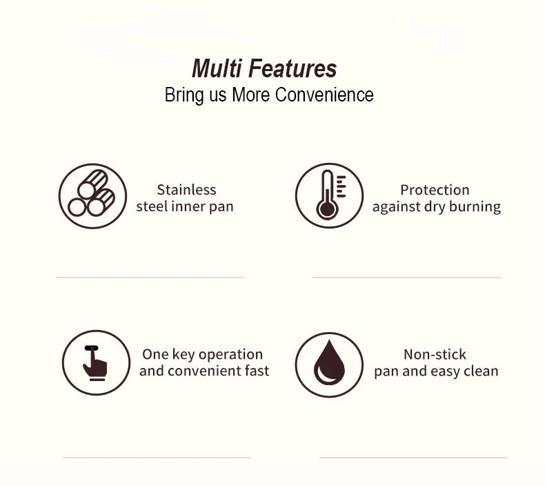 Function: Rice/Grains,steam,Stew Soup,Keep Warm,Reheat