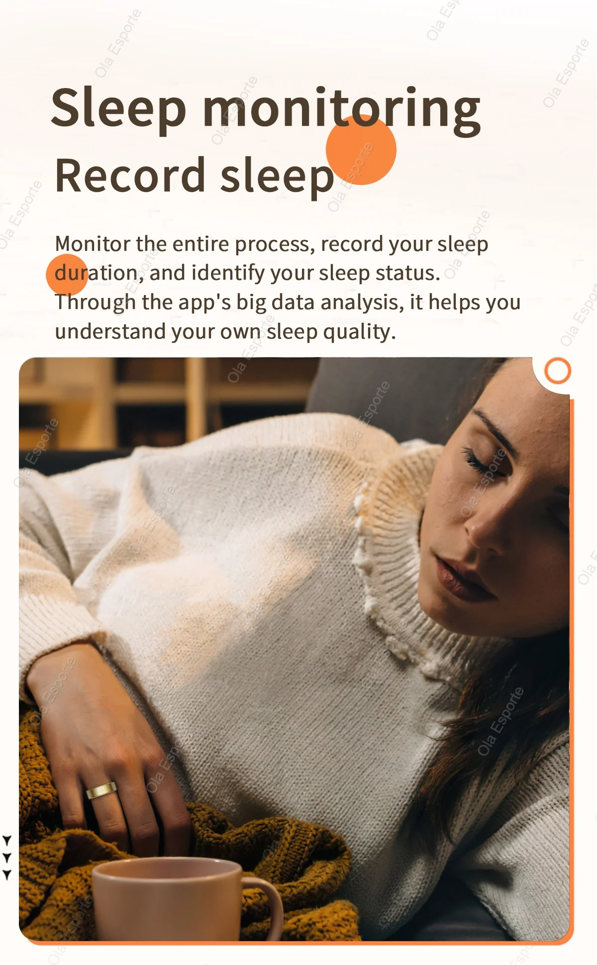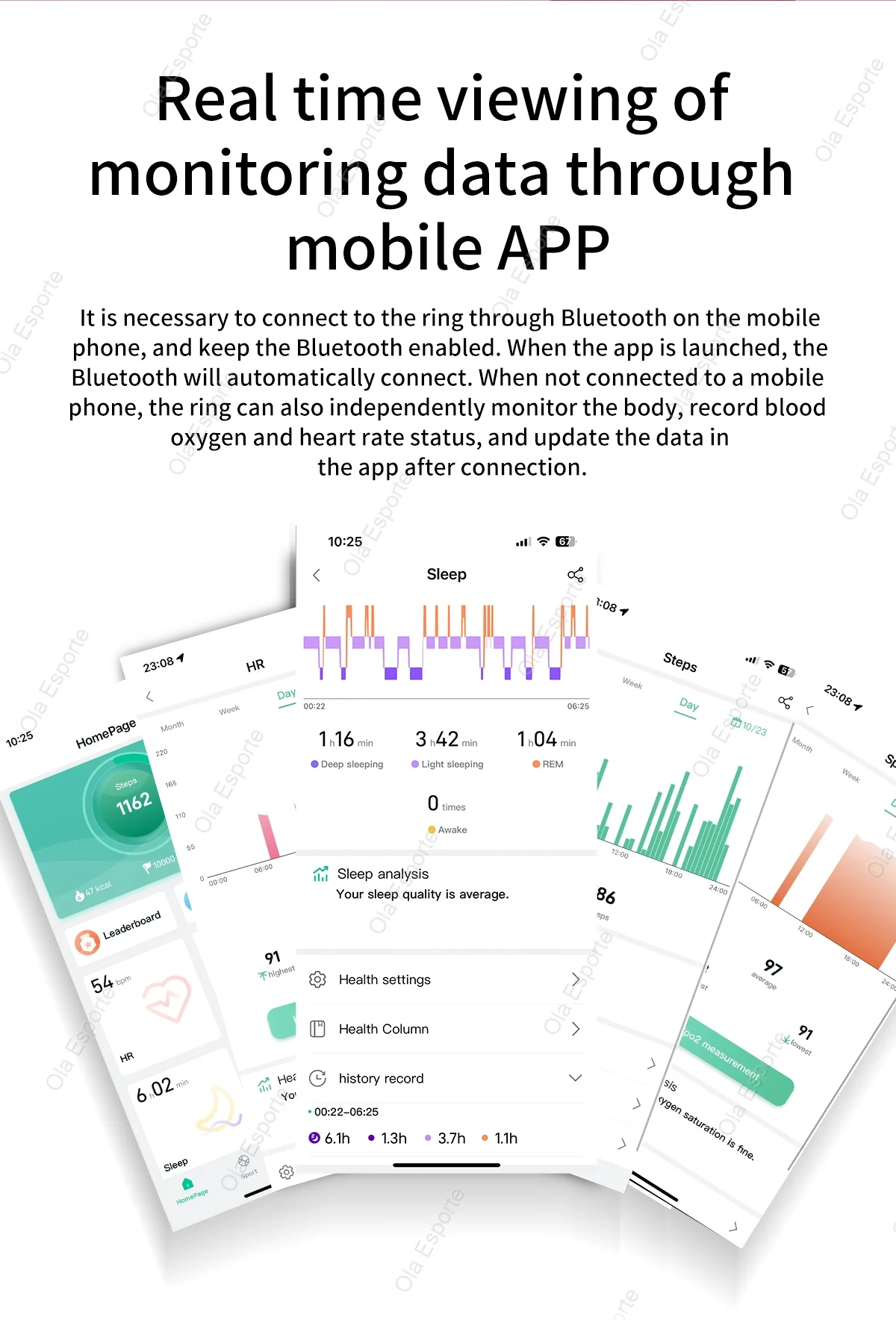 3.Health Check: Track your blood pressure, sleep quality, and more with this multi-functional ola esporte smart ring. Keep a close eye on your well-being and stay on top of your health at all times.