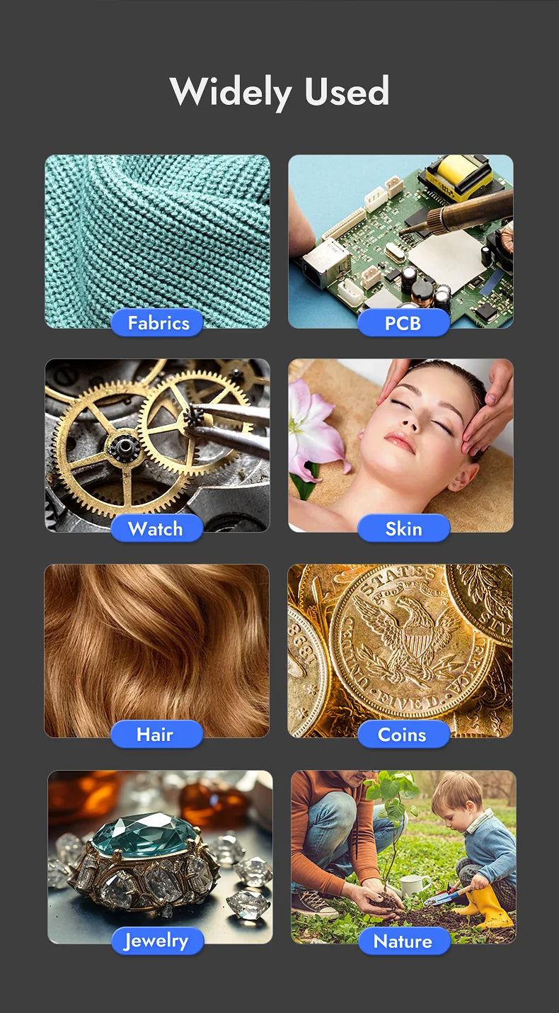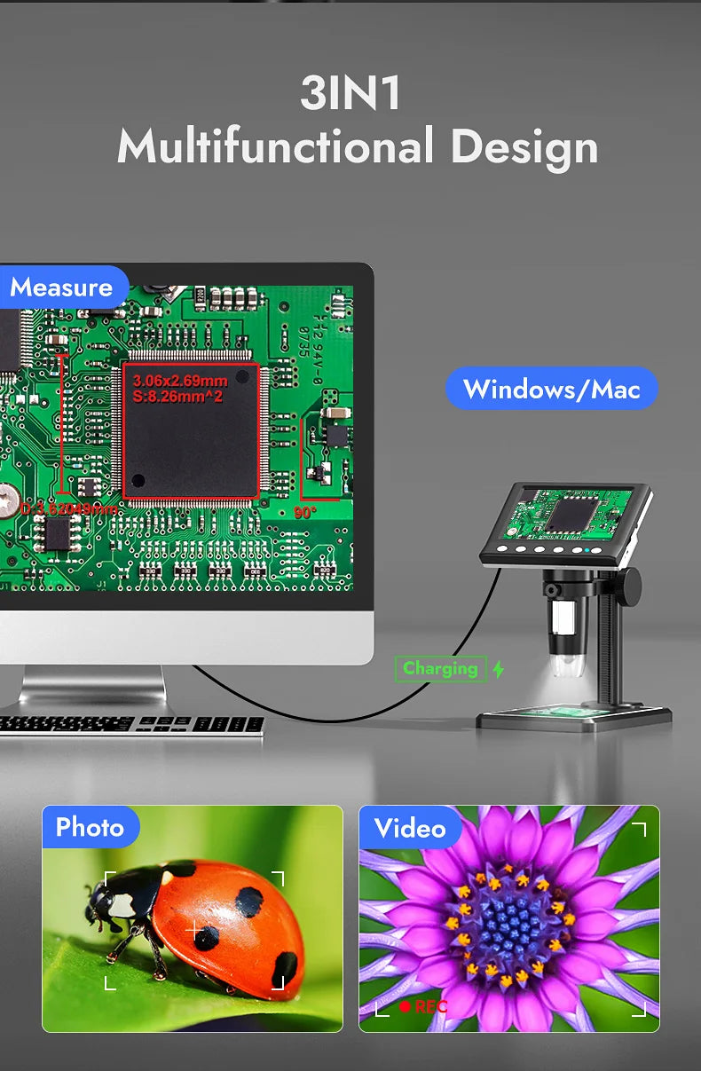 【EASY FOCUS, WIDELY USED】: Digital microscope is very suitable for circuit board inspection, coins, jewelry and stamps, clock repair, skin detection, children's education inspection, textile industry, biological observation (not applicable to cells), QC inspection, medical professionals, scientific researchers, and enhance the interaction between parents and children, teachers and students.