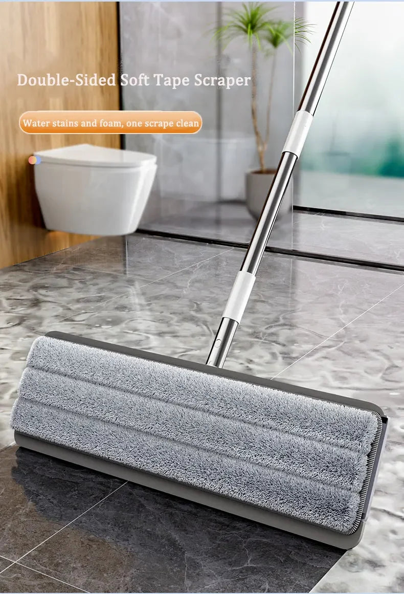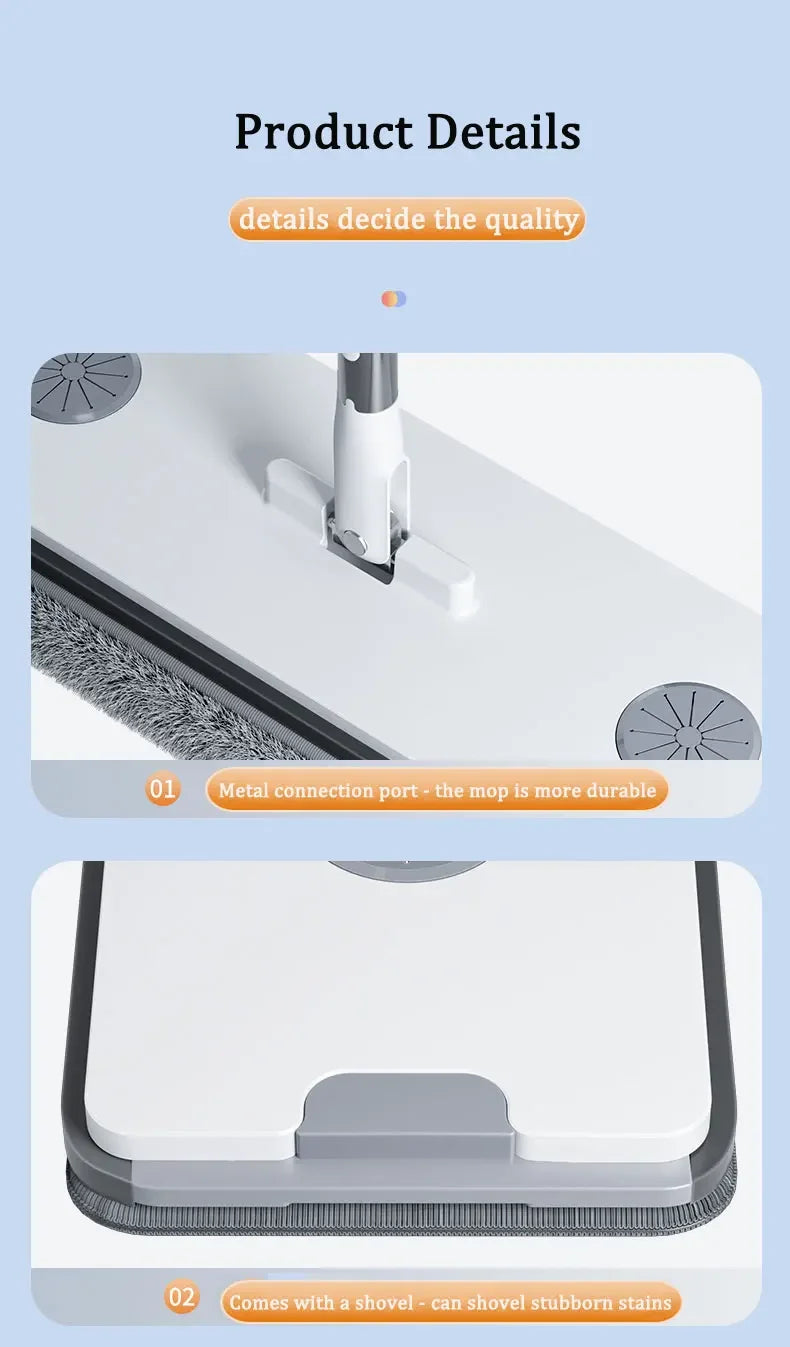 5. The flat mop head is enlarged by 40cm, and scrapers are added on both sides of the mop head. Whether it is foam or water stains, it can be thoroughly cleaned with one scrape. The mop head joint is made of stainless steel, and a stainless steel shaft is added and the outer plastic is reinforced.