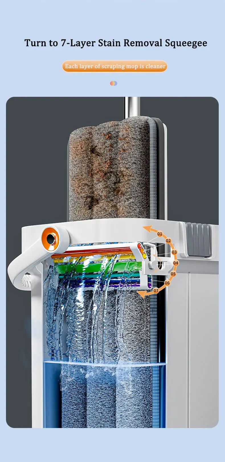 1. The bucket uses 7 layers of scrapers, which can achieve faster and cleaner results whether it is cleaning or draining and wringing the mop. It is better than rubbing it by hand, saving your time and labor, letting the bucket do more than you do yourself. Mopping the floor only needs to be done between the mop and the bucket, away from dirty water, you only need to insert and pull the mop.
