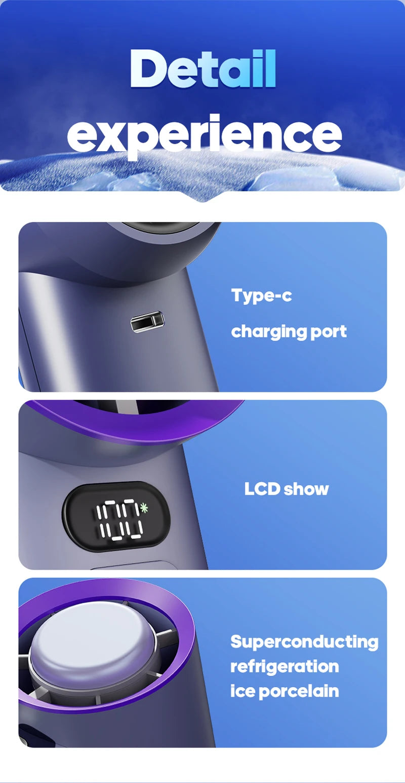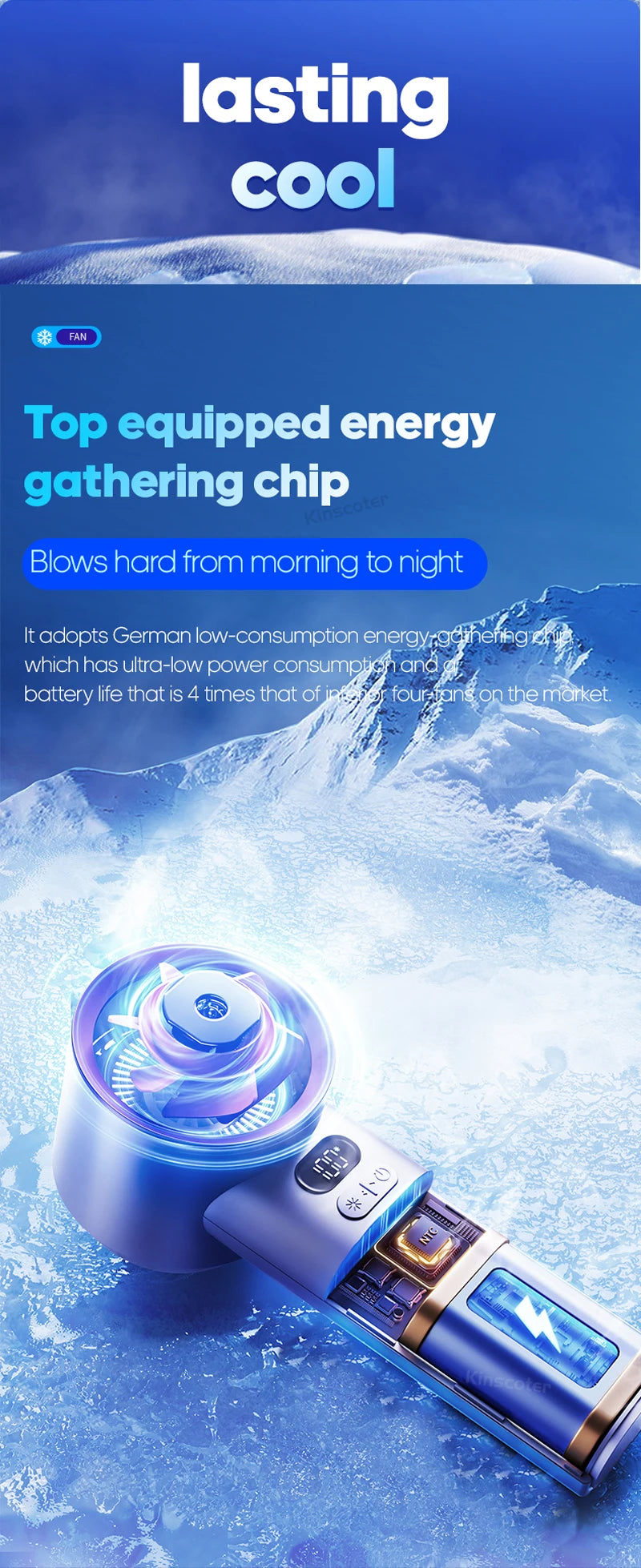 Innovative Ice-Cool Technology: Stay cool in the heat with our fan's unique ice-cooling function, reducing surface temperature to as low as 18°C. It's not just a breeze; it's a cold gust that brings instant relief from the summer sun, ideal for those scorching days or when you need a quick cool-down after exercise.
