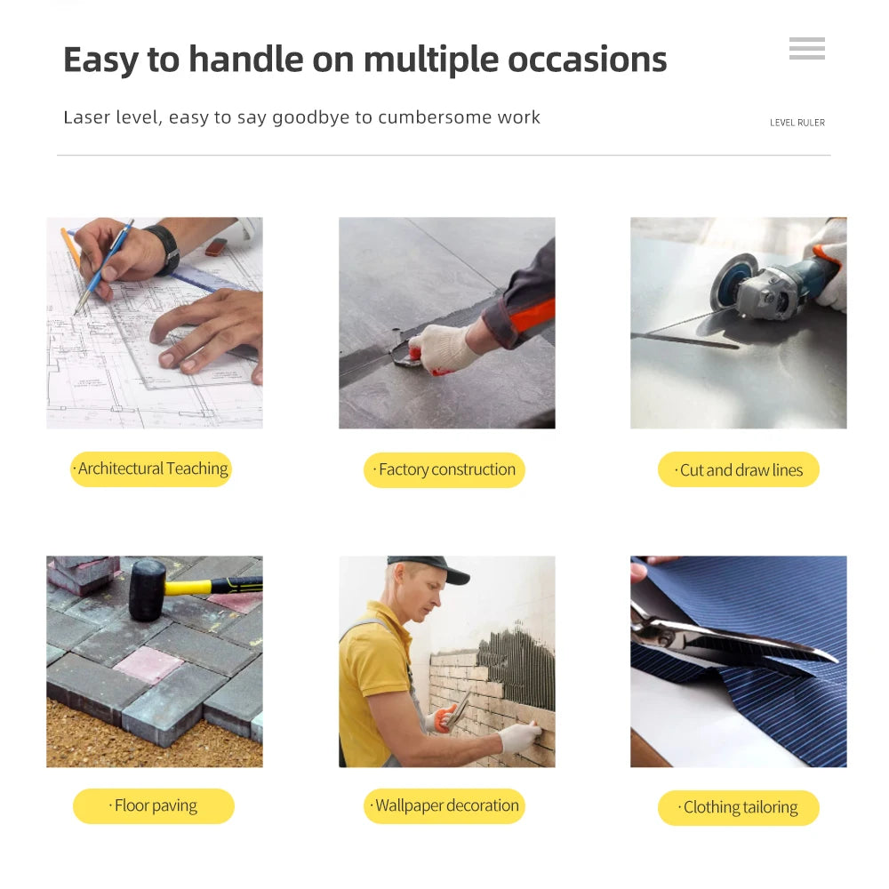 1. Laser horizontal ruler can measure whether the plane is uneven or hanging, etc.LV2 laser horizontal ruler can make a straight line.