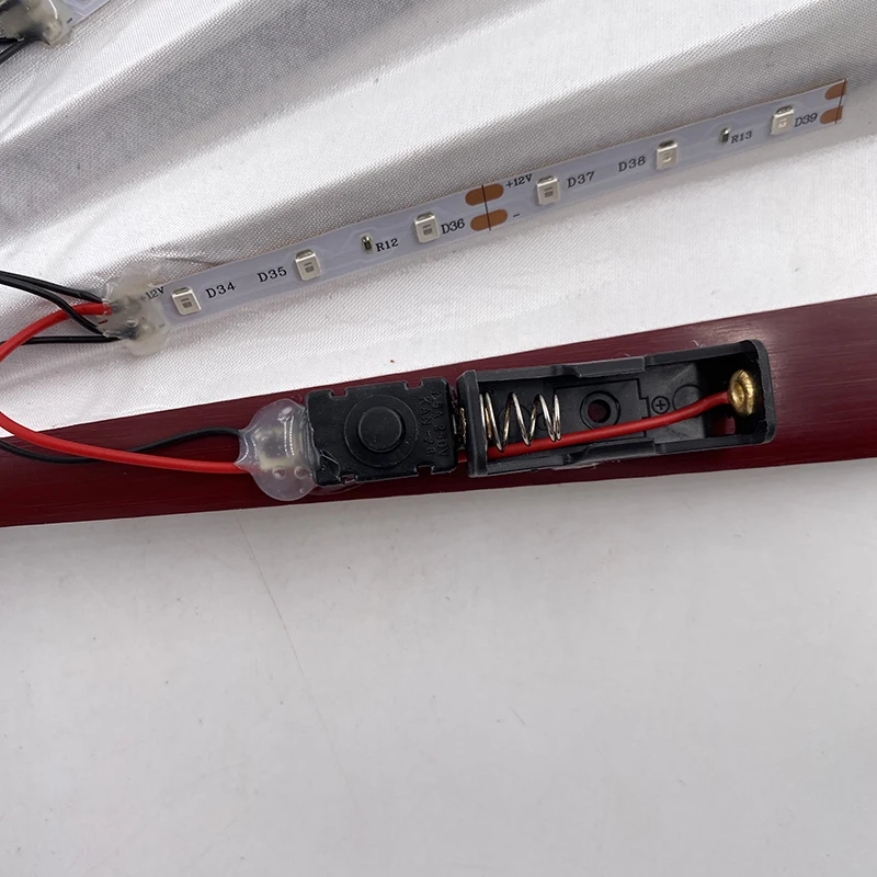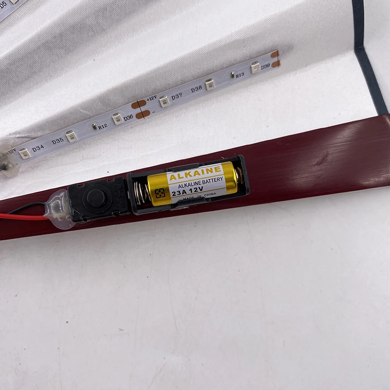 How to use: Open the battery box ,put 2 pcs CR2032 batteries in the battery box of LED fan,the outer side battery with positive down and negative up , the inner side battery with positive up and negative down .press the blue button on the top,the light fast flash ,press the button again ,the light slow flash ,press the button again ,the light on ,press the button again ,the light off .