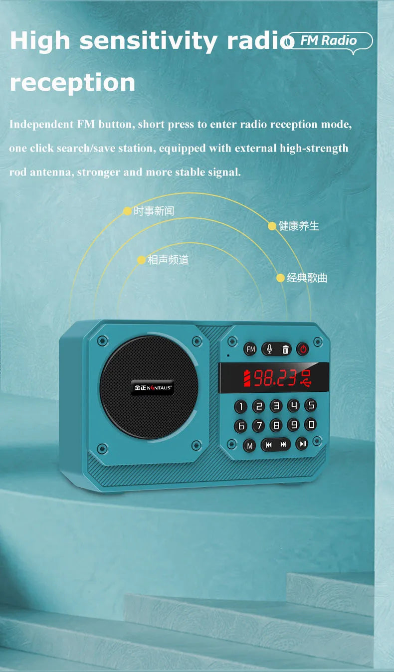 Radio High Sensitivity Radios Receiver Wireless Hifi Bluetooth Speaker with Mic Support Recording TF USB Play