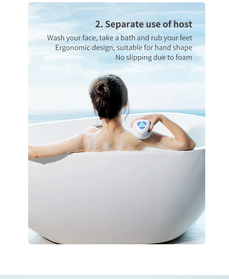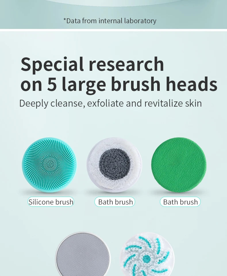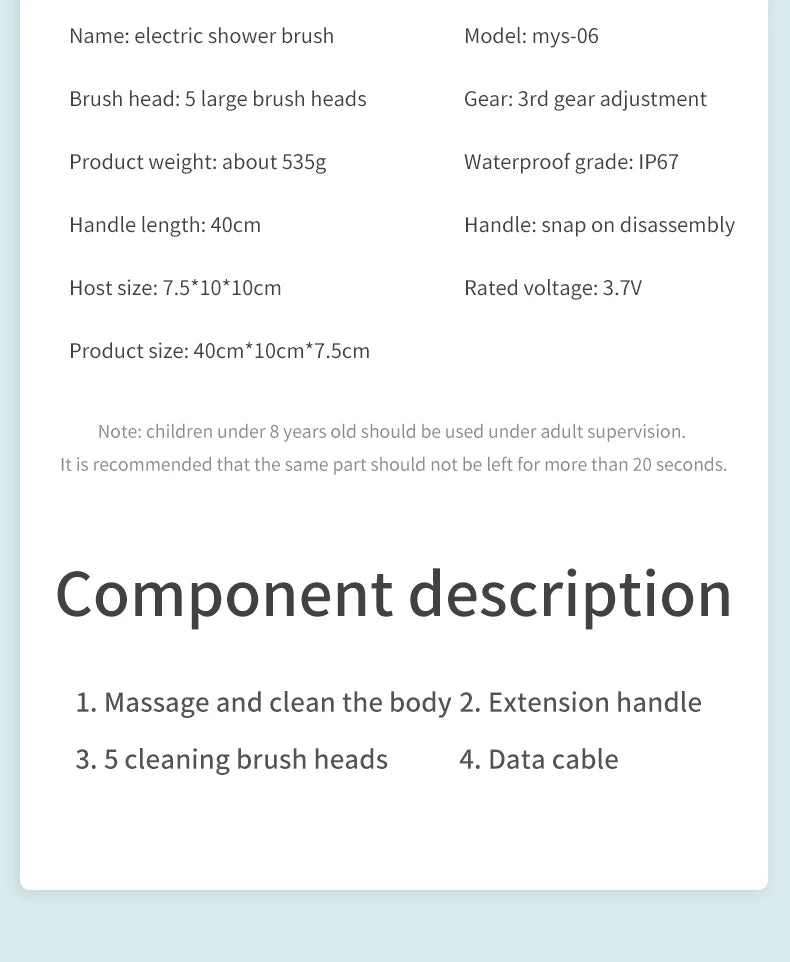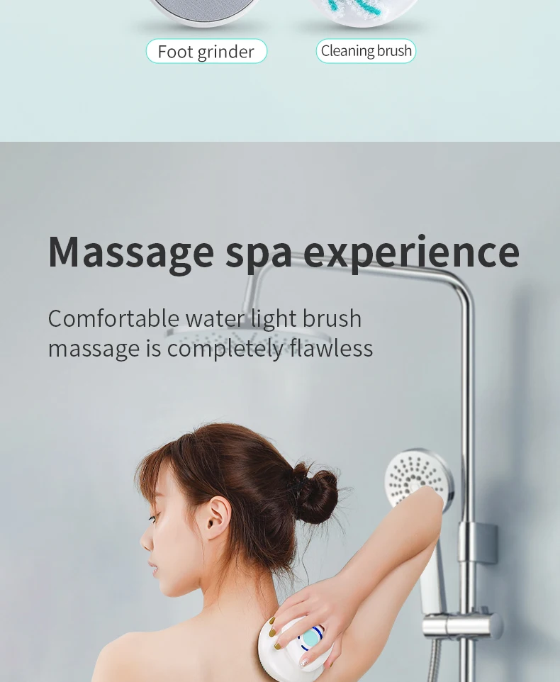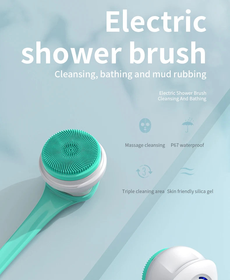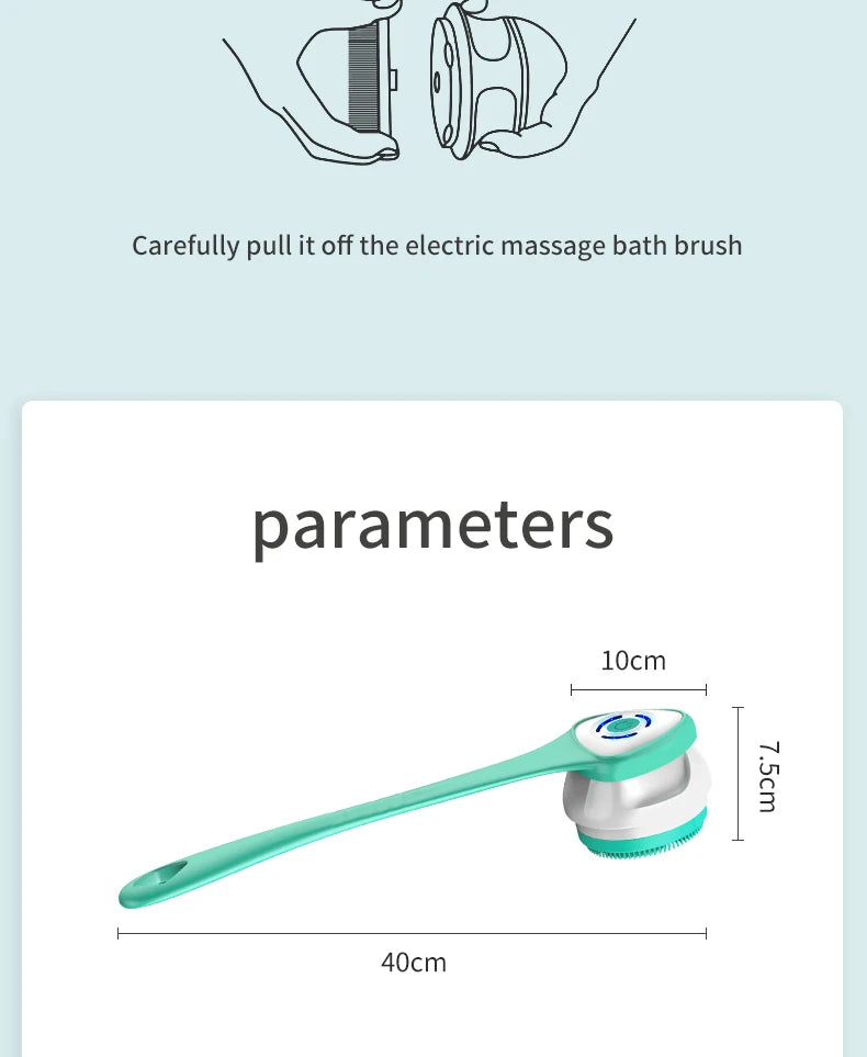 Multifunction Detachable Electric Bath Brush 5in1 Facial Cleansing Skin Grinding Back Rubbing Long Handle Massage Shower Brush