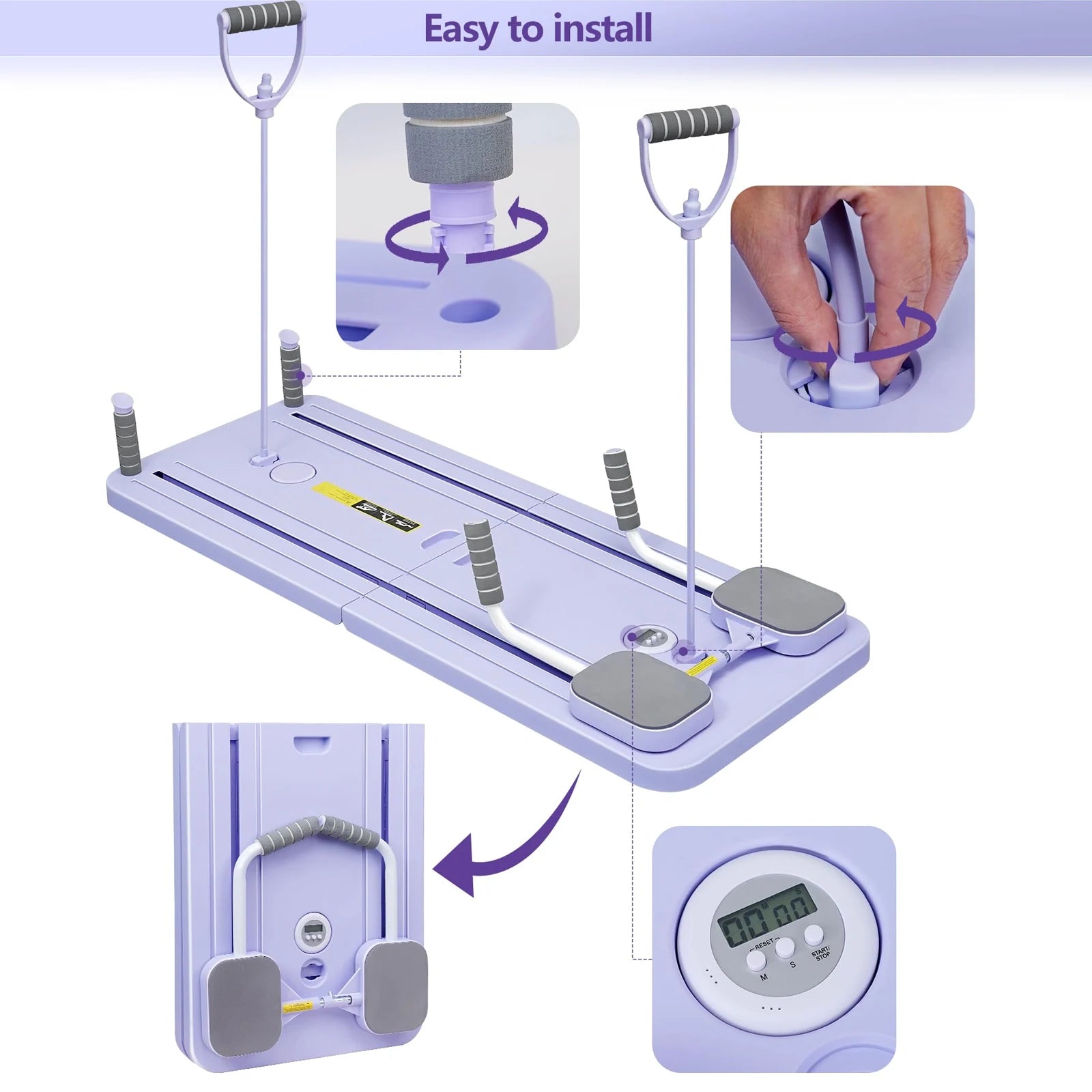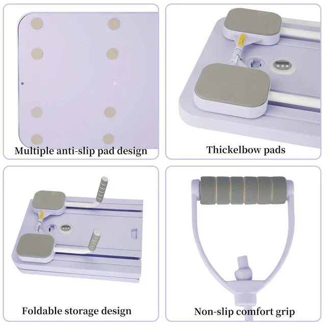Humanized design: Considering the user's comfort and convenience, the Pilates board is equipped with thick EVA elbow support pads and soft foam handles to make your workout more enjoyable. The included accessories such as knee pads, stopwatch and mobile phone holder make all the necessary tools within reach. The convenient folding design is easy to carry and store, which is an ideal choice for maintaining a healthy lifestyle whether at home or traveling.