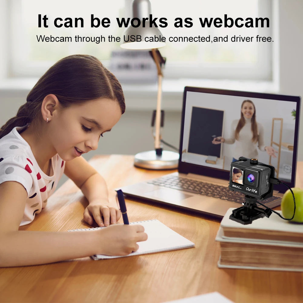 ■The action camera can be used as a web camera through the Type-C cable connected and play driver free.
