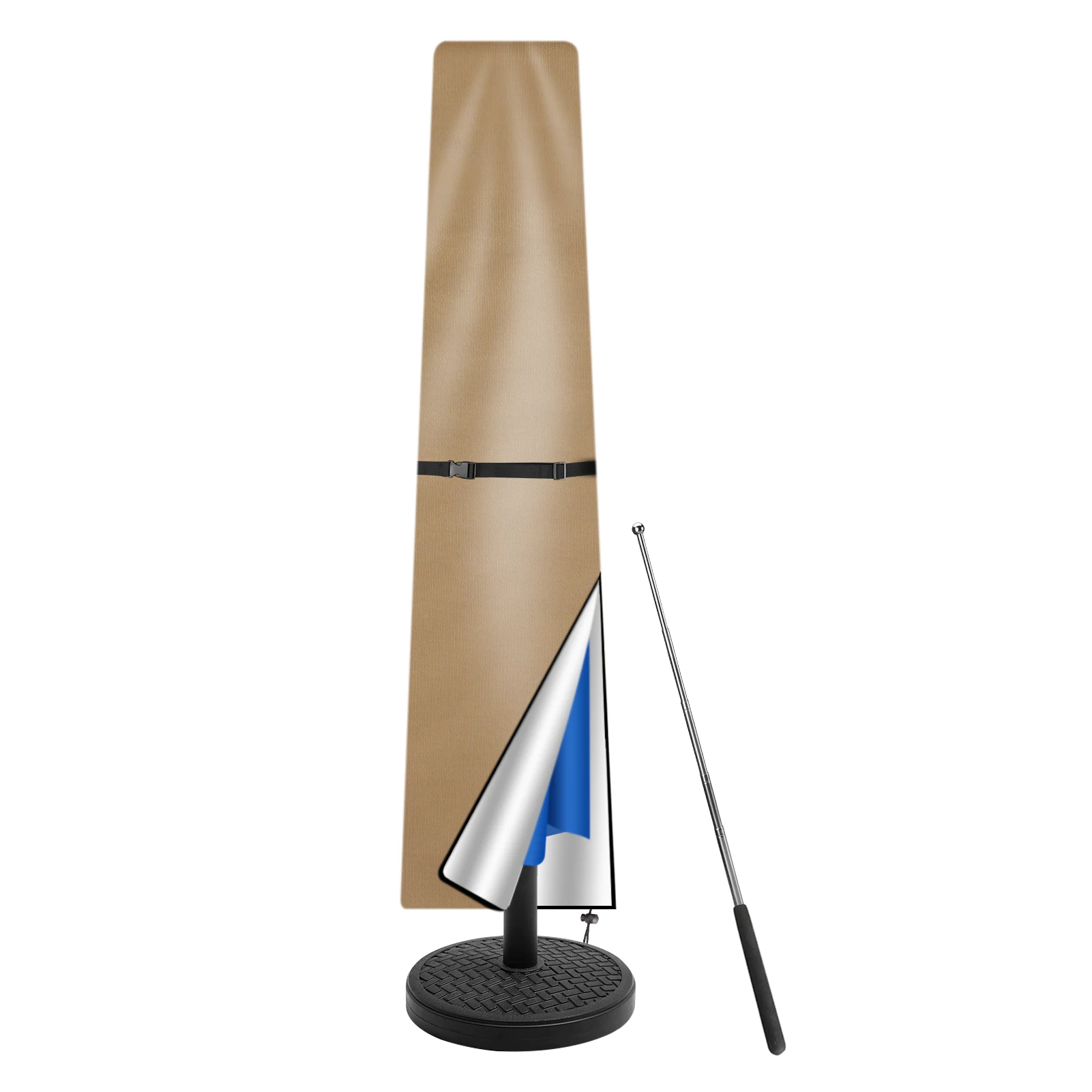 This heavy-duty parasol cover is waterproof, UV-resistant, tear-resistant, and fade-resistant, better protect your parasol from harsh environments such as strong sunshine, rain, snow, dust, and more.