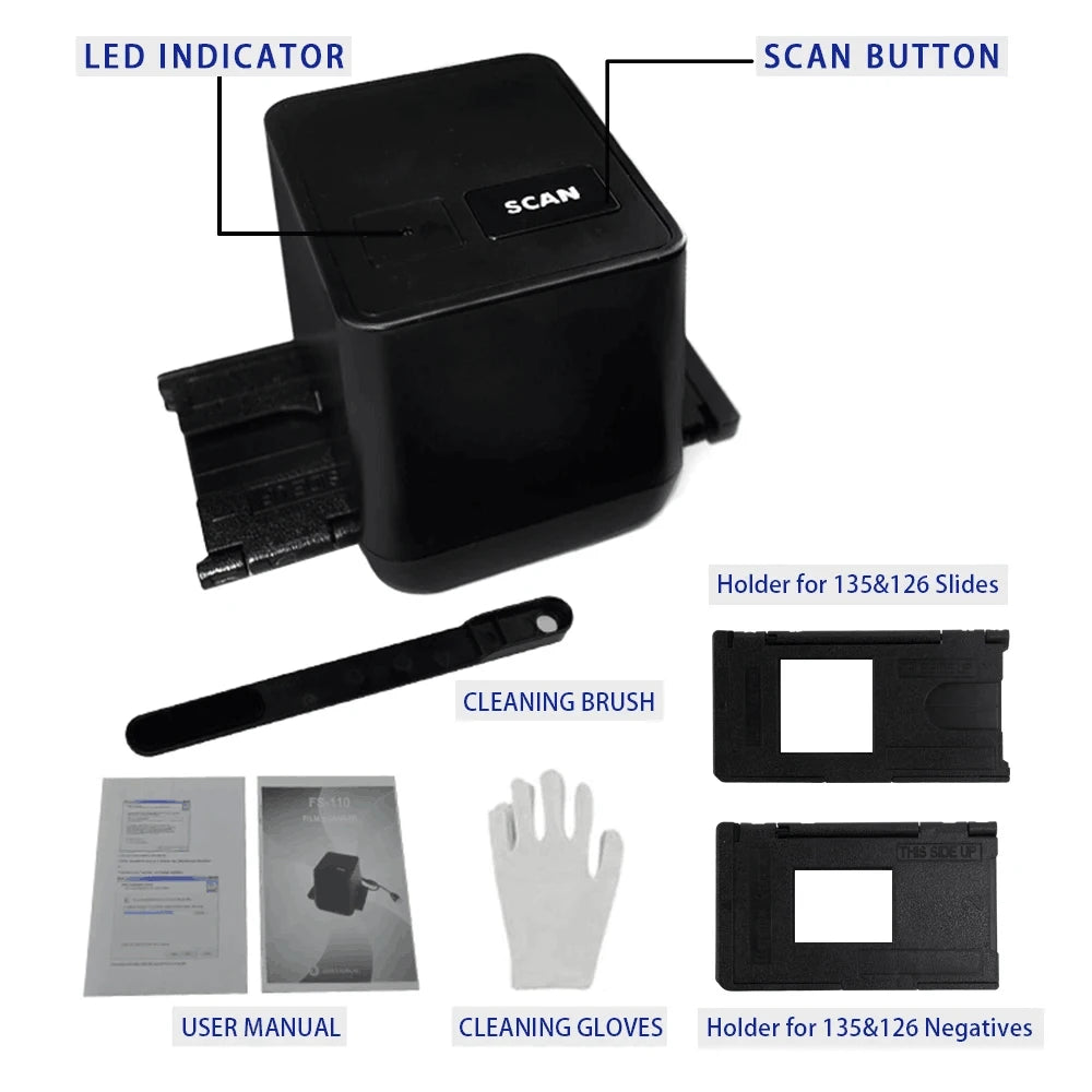 QPIX Scanner Portable Negative Film Scanner 35/135mm Slide Film Converter Photo Digital Image Viewer Connect with Computer Directly