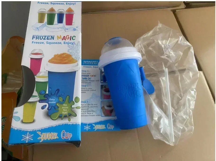 使用方法:冰箱冷冻两小时后倒入饮料反复捏即可出现沙冰