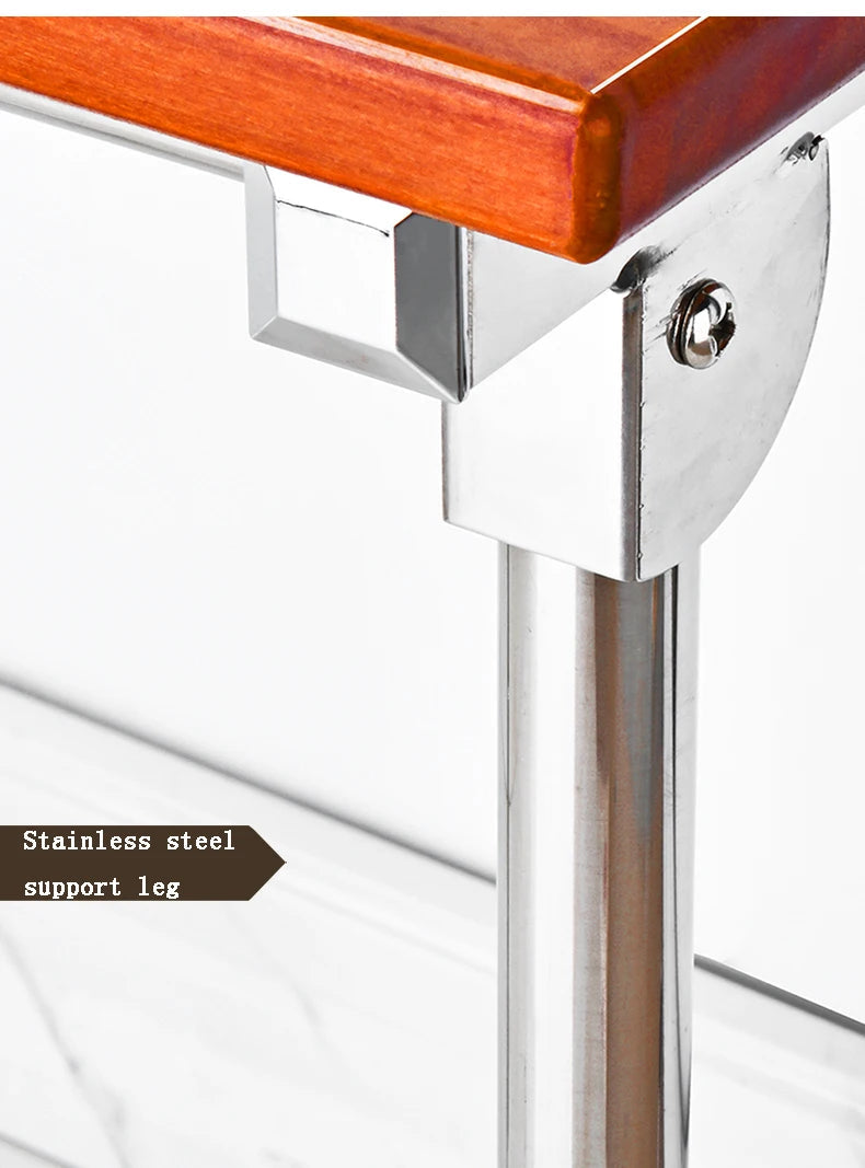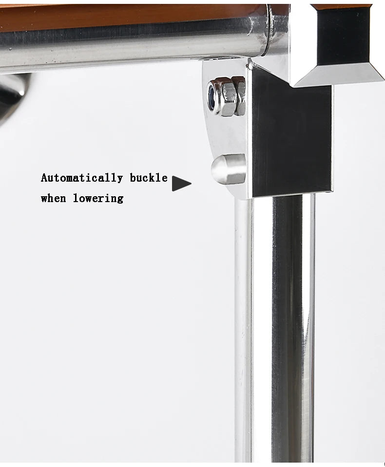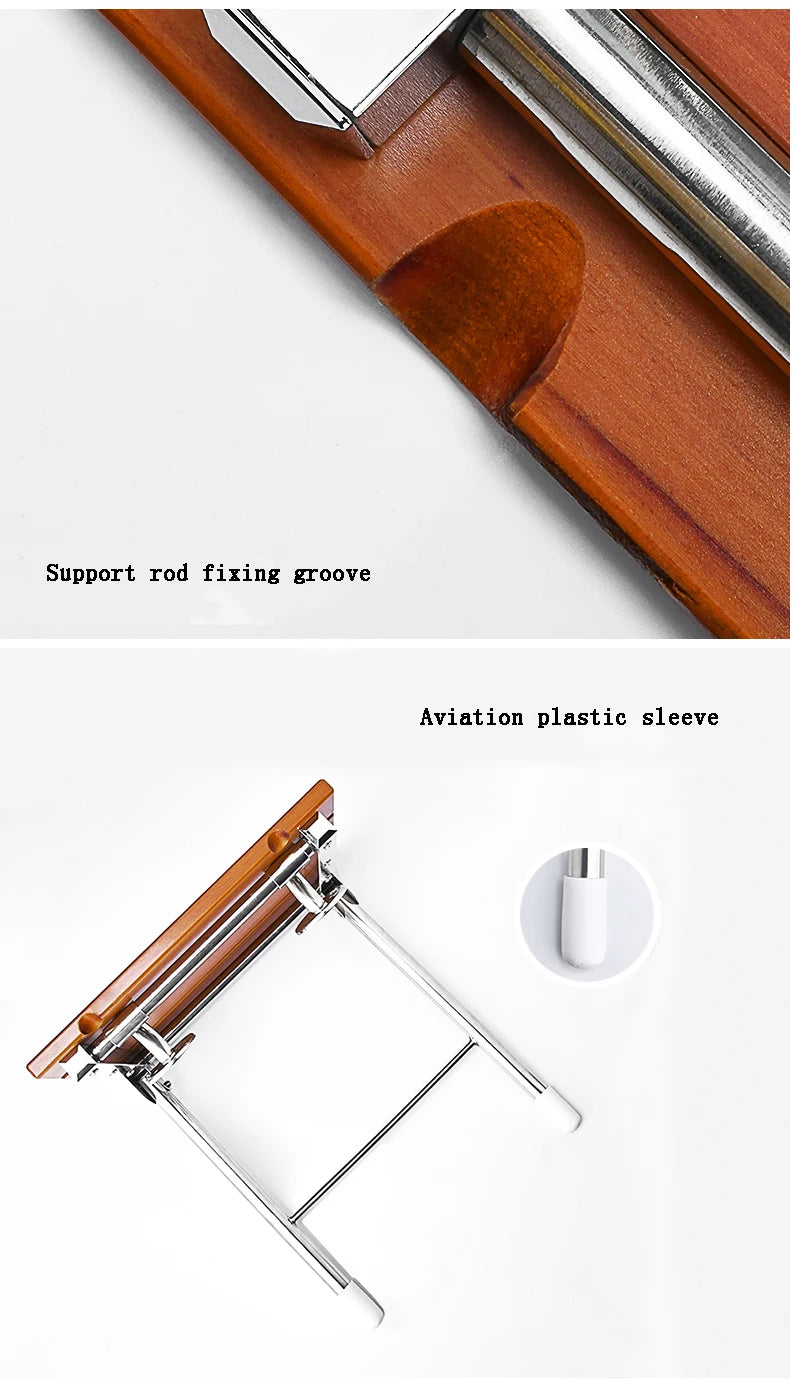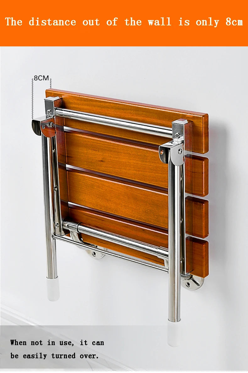 5. Imported solid wood material, stainless steel support. The bearing capacity is about 160kg. When the stool is stowed, it is 8cm away from the wall.