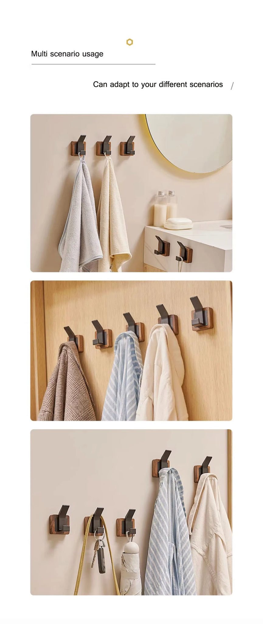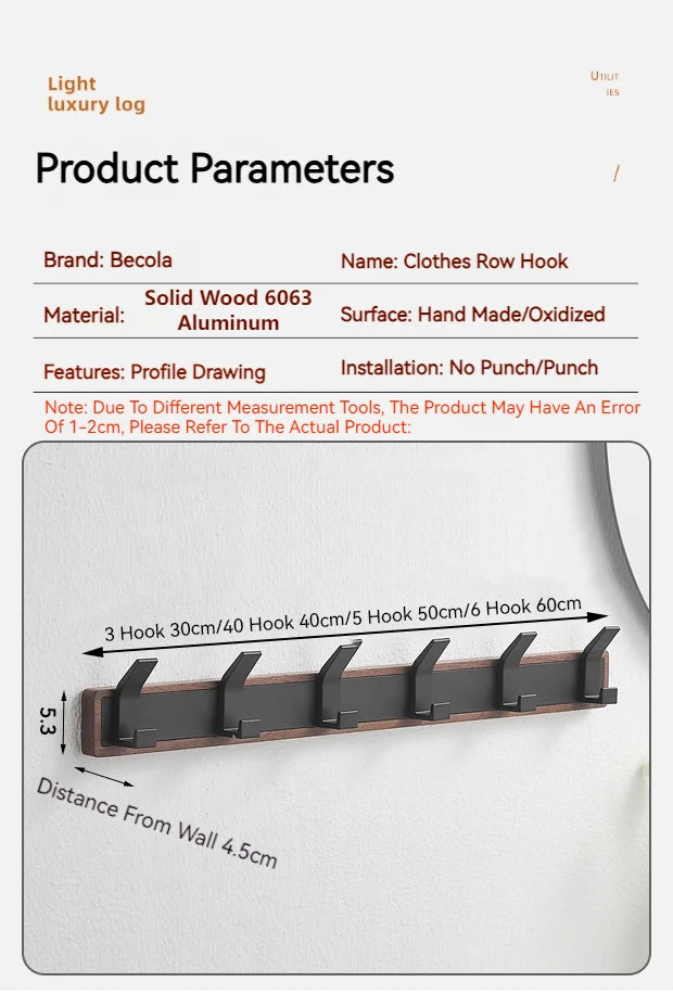 Walnut Coat Wall Hook Wall Hanging Coat Rack for Bathroom Kitchen Bedroom Hallway Wall Hooks Coat Clothes Holder